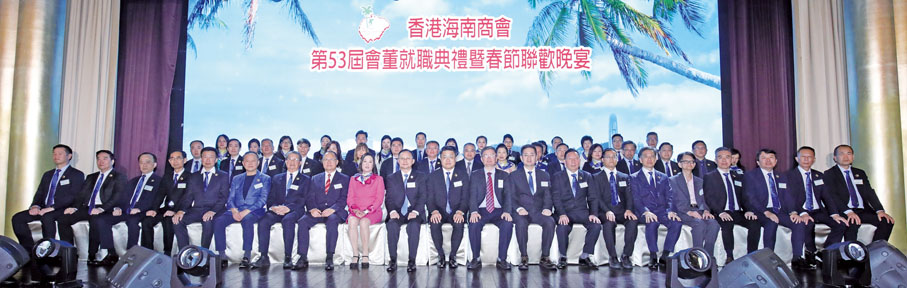 香港海南商會於3月23日假香港君悅酒店舉行第53屆會董就職典禮暨春節聯歡晚宴。中國科學院院士、海南省政協副主席、海南大學校長駱清銘,香港商務及經濟發展局副局長陳百里,海南省委統戰部副部長、省工商聯(總商會)黨組書記林勝,以及香港中華總商會會長蔡冠深等蒞臨主禮,賓主近400人共同見證盛況。