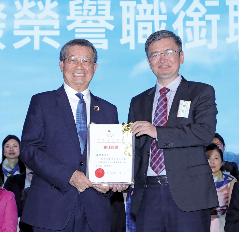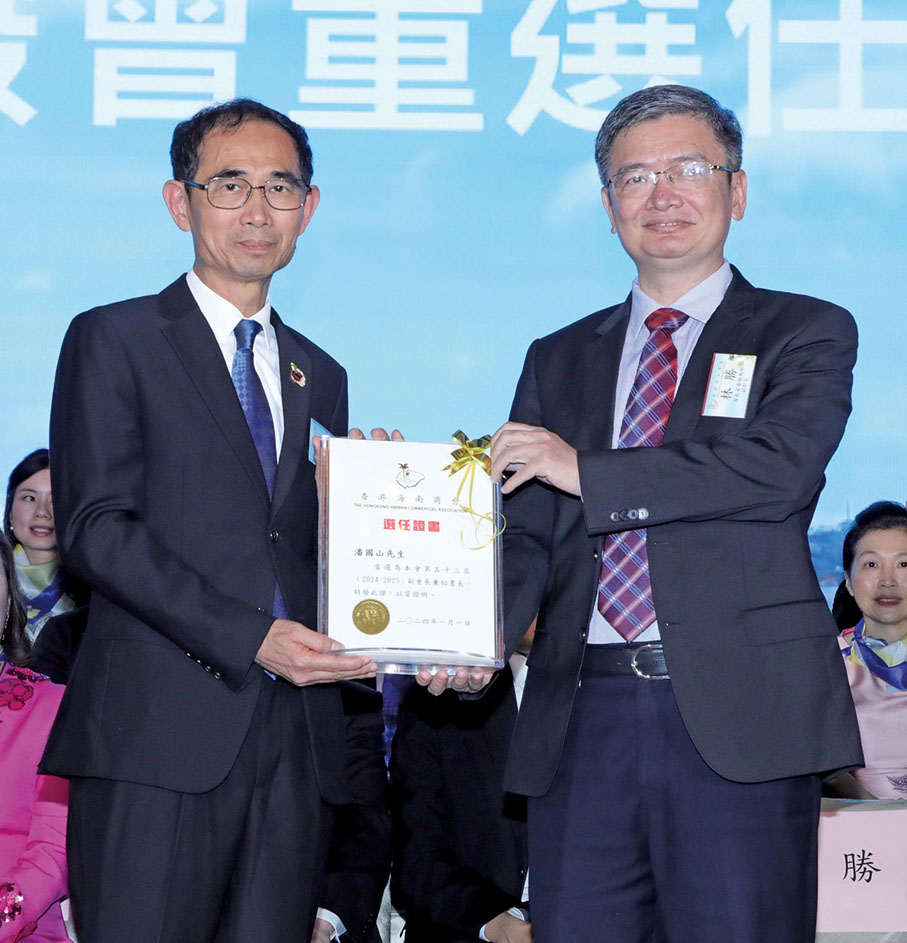 「蓬勃海南奔涌無限機遇,璀璨香江呼喚大有作為。」駱清銘致辭時說,受海南省政協主席李榮燦和海南大學黨委書記符宣國委託,謹代表海南省政協和海南大學向新一屆會董的就職表示熱烈的祝賀,對香港海南商會和歷屆會長以及各位鄉親的仁善之舉,表示由衷的敬意;希望商會在潘家德會長的帶領下,新一屆會董不忘初心,繼續立足香港,面向海南,發揮橋樑和紐帶作用,推動更多好企業、好項目到海南發展;同時講好中國故事、海南故事,向世界傳遞海南正能量、傳播海南好聲音,為港瓊兩地的經貿交流合作、社會繁榮穩定作出新的更大貢獻。