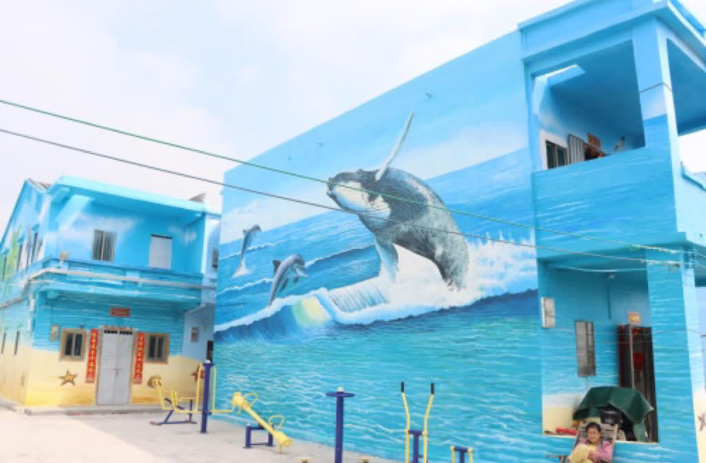 在江門「台山海洋牧場」建設項目,建設團隊將廣海碼頭的藍色海洋延伸到村子。隨着廣海漁旅融合項目「文化長廊」及和「美漁村牆繪」建設啟動,建設團隊對從高速到廣海漁港,全長6公里的沿路景觀優化、公共文化節點打造和道路進行修補,對沿山而建、錯落有致約2萬平方米的200戶漁村民房進行牆繪施工。通過繪上滿載而歸的漁船、陽光、沙灘和椰樹、自由翱翔的海龜、歡快嬉戲的白海豚等,有效推進以現代化海洋牧場建設為主要形式的區域性綜合開發,成為提升當地交通、酒店、景點、文體等旅遊基礎設施建設的代表項目。