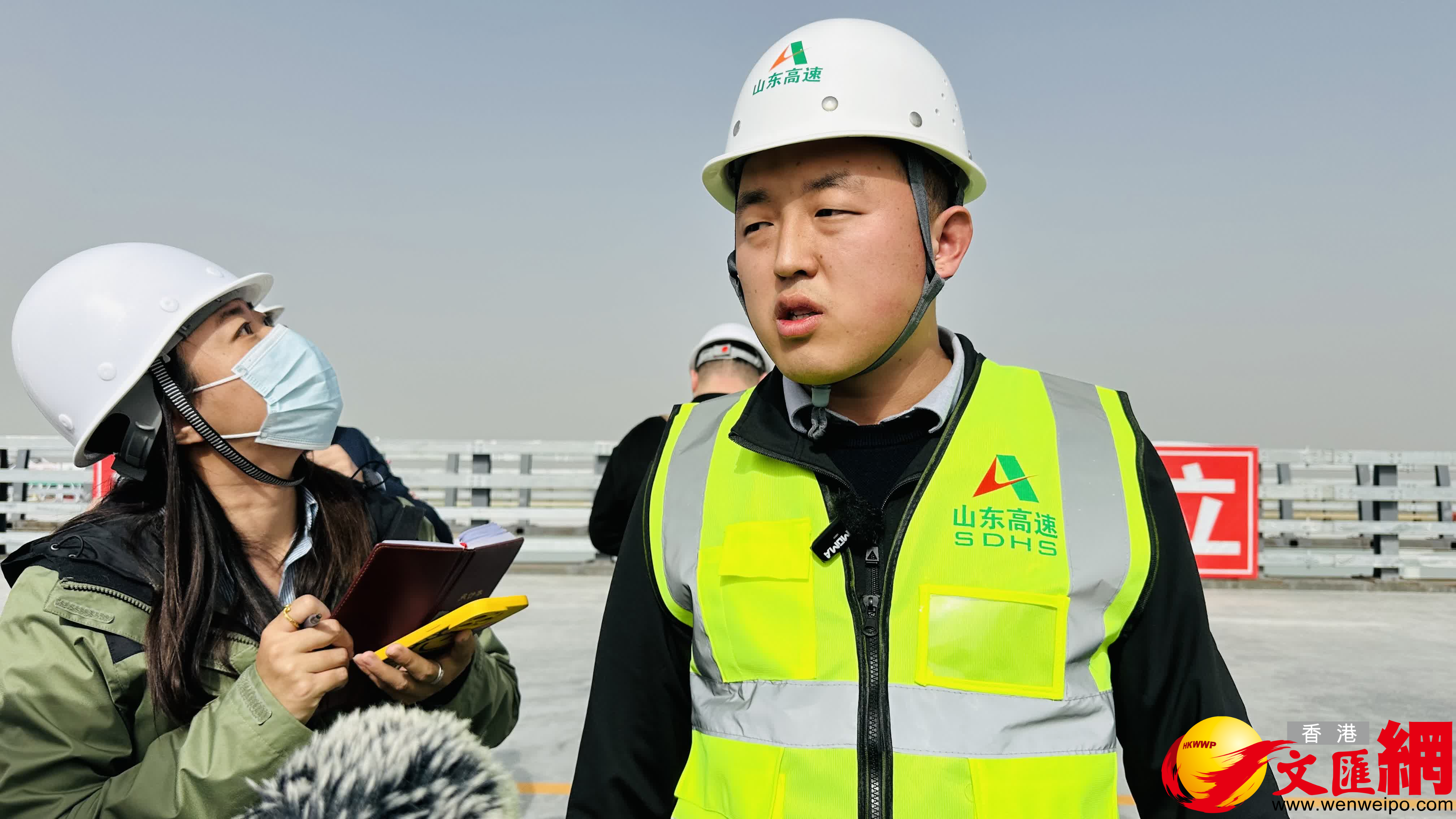 創新成果應用、綠色環保是黃河特大橋建設的亮點。濟南大北環項目公司董事長王洪國介紹說,該橋採用鋼-UHPC輕型組合橋面技術,解決了傳統正交異性鋼橋面板鋼結構疲勞開裂和鋪裝層頻繁破損兩大難題。為實現「雙碳」目標,該項目在水穩施工中還試點應用了粉煤灰、礦渣等固廢材料為基材的超緩凝膠凝材料代替傳統水泥,並基於超緩凝膠凝材料凝結時間長的特性,在鋪築過程中採用三層連鋪工藝,大幅提高了施工效率,減少碳排放量。