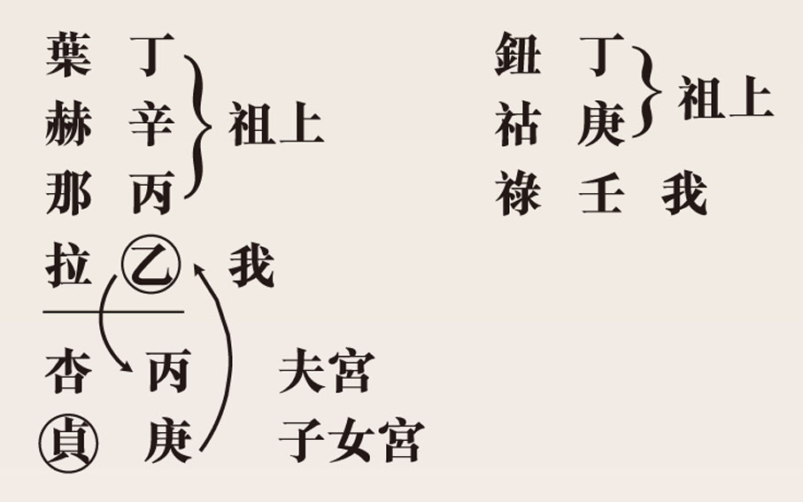 家勢顯赫,有別於葉赫那拉氏,丁火辛金丙火及乙木,明顯姓氏越長,生態越壓迫,要步步為營,而乙木要先情後理,故行事用人為親,所謂「自己友」先,而祖上,丁火剋絕辛金,家勢自然遠不及皇后。而杏貞,「杏」字丙火,自然萬事從夫,乙木生丙火故,而自己則以子息為貴,因「貞」字,子女宮庚金合乙木化大金,大貴。但乙木生丙火剋「庚金」,對子女之控制慾及權力慾則非常強大,所以同治帝正是她親生兒子!