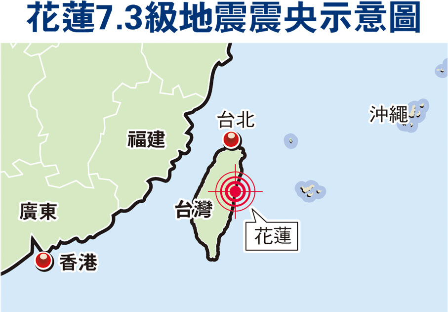 北京時間4月3日7時58分,台灣花蓮縣海域發生7.3級地震,至晚間發生餘震上百次。25年來最大強震造成至少9人死亡、1011人受傷,上百人受困,當地公路、鐵路交通嚴重受損。