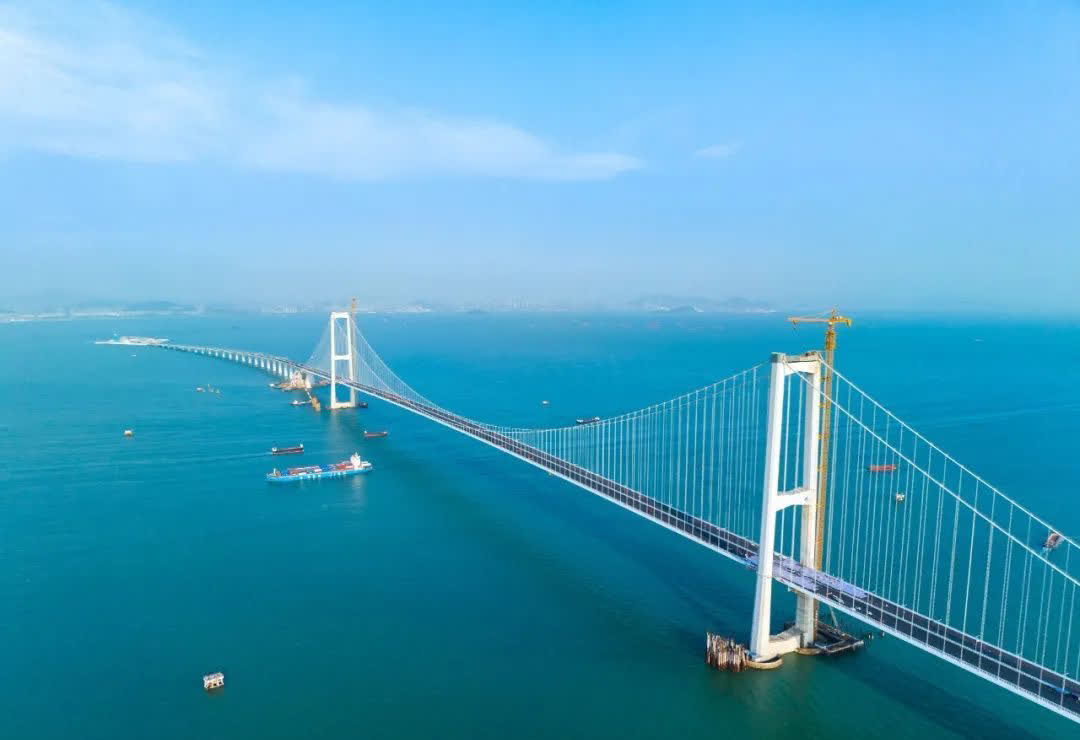 其中,作為深中通道項目的控制性工程,伶仃洋大橋為主跨1666米的懸索橋,主塔高270米,相當於90層樓高,通航凈空高度為76.5米。面對高溫、高濕、高鹽、強颱風頻發的惡劣環境,項目突破了海域深厚軟基大型錨碇建造難題,首創鋼橋面板全熔透焊接接頭技術,研發應用了6毫米直徑2060兆帕高強鋅鋁稀土(鎂)合金鍍層鋼絲以及國內首台一體化智能築塔機。同時,還創下五項世界紀錄,包括離岸海中懸索橋跨徑最大、通航凈高最高、海中錨碇體量最大、主纜鋼絲強度最高、顫振檢驗風速最高,實現了橋樑高質量建設,進一步鞏固我國橋樑建設的領先水平。