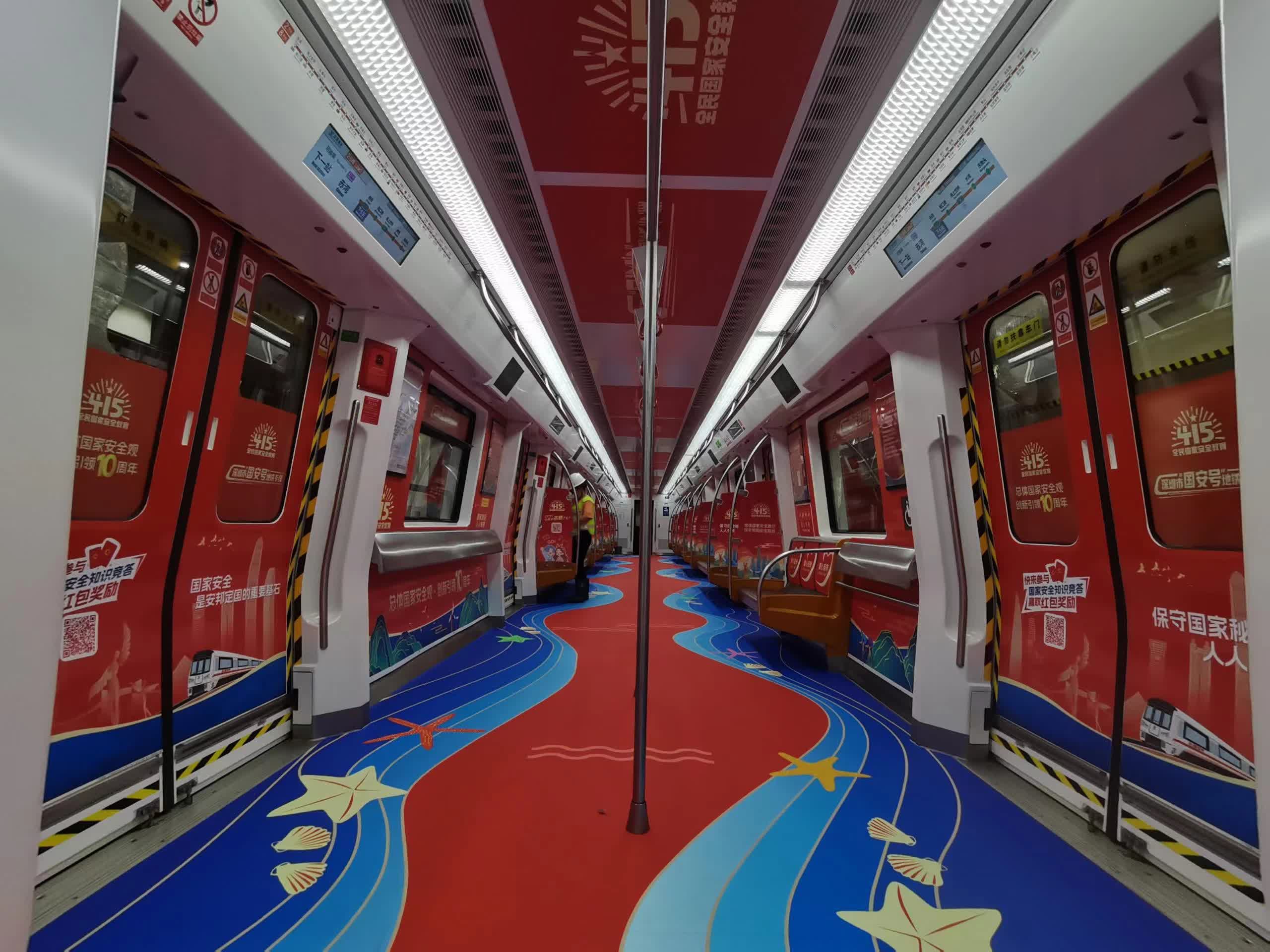 記者看到,車廂在設計上提取了「4·15」標識的紅星紅和光芒黃,同時融入了山海元素。在內容上,以富有感染力的標語和生動的案例深入淺出地展示了政治安全、科技安全、人工智能安全等多方面的國家安全知識。