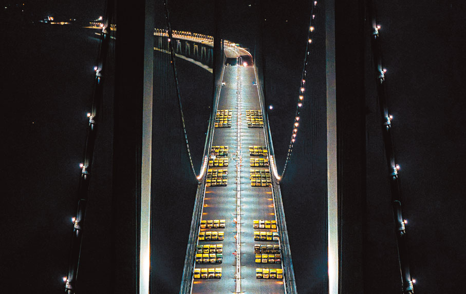 香港文匯報訊(記者 方俊明 中山報道)粵港澳大灣區「超級工程」深中通道橋樑工程「全身體檢」順利通過!廣東交通集團18日透露,經過136輛總重約5,000噸的大貨車組的荷載測試,深中通道伶仃洋大橋在17日晚完成動靜載試驗,這是世界首次在全離岸海中超大跨徑懸索橋上完成的荷載試驗。加上深中通道中山大橋、非通航孔引橋此前已完成荷載試驗,這意味着深中通道橋樑工程順利通過「大考」,朝着今年六月具備通車條件又邁進關鍵一步。