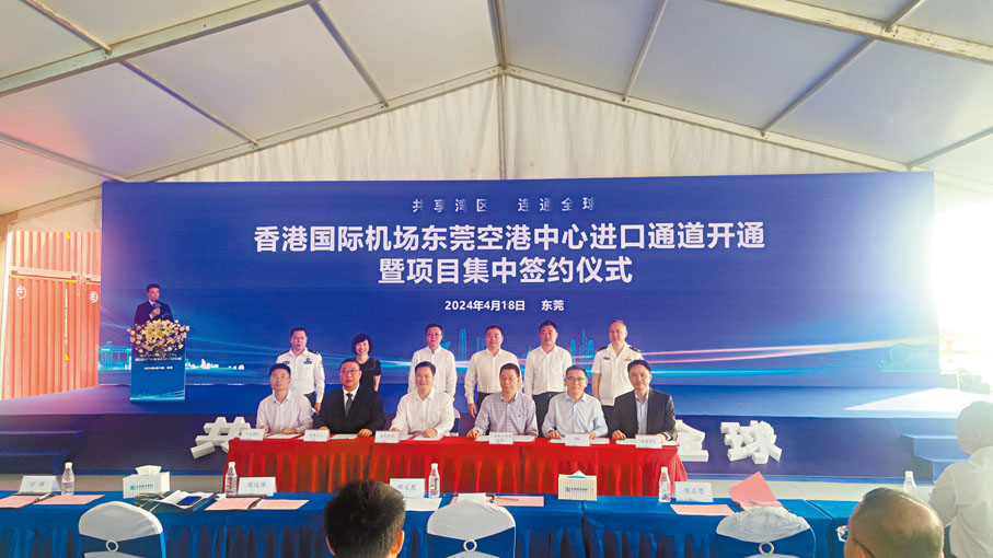 空港中心亦吸引了國際國內的龍頭物流企業進駐合作。18日,空港中心與4批項目的企業進行集中簽約。簽約企業之一、怡亞通副董事長陳偉民表示,怡亞通將借助空港中心進口通道,全力推動將東莞港打造成為高端電子元器件貿易及物流集散基地,預計年進口額不低於20億元。記者了解到,東莞港務集團將攜手怡亞通借助進口空運通道,打通大灣區電子元器件進口空運通道。