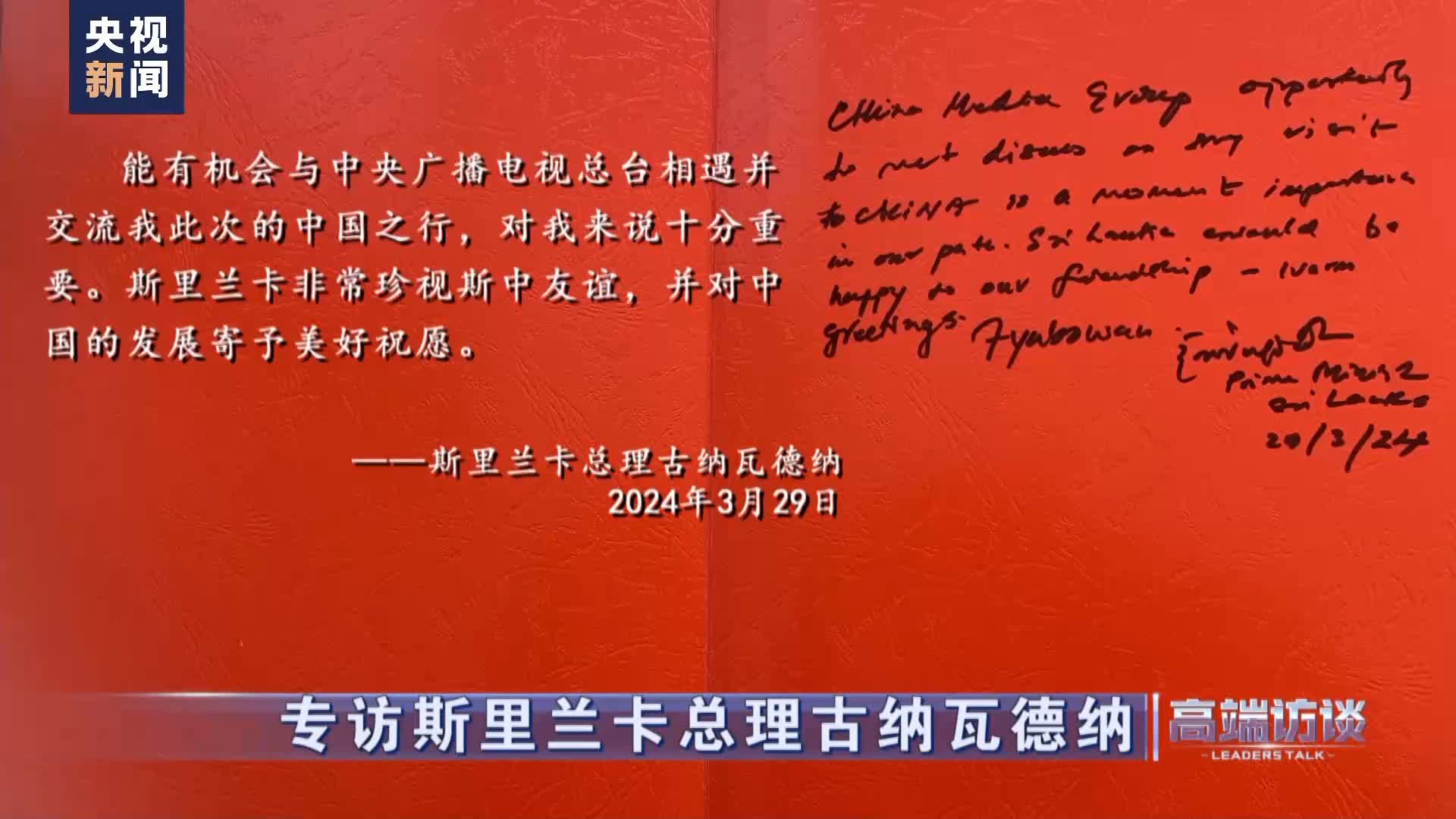 在專訪當中,古納瓦德納總理表達了對中國在斯里蘭卡遇到困難時伸出援手的感激,並讚賞中國的發展惠及世界。他希望斯里蘭卡可以學習中國式現代化的成功經驗,與中國共同發展。我們也期待中斯真誠互助、世代友好的戰略合作夥伴關係能夠根深葉茂,不斷向前。