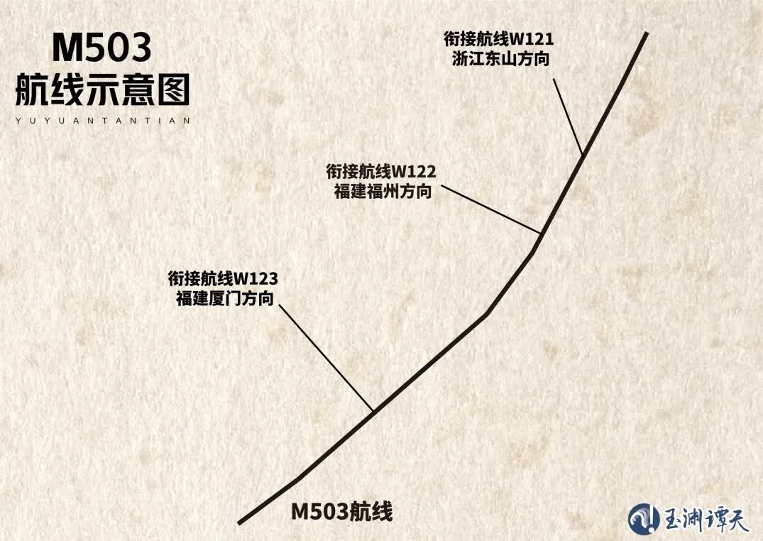 這樣的背景下,在經過國際民航組織(ICAO)核准後,這條代碼為M503的新航線正式落地,與之相配套的還有三條銜接航線,即飛往浙江東山的W121、飛往福建福州的W122和飛往福建廈門的W123。