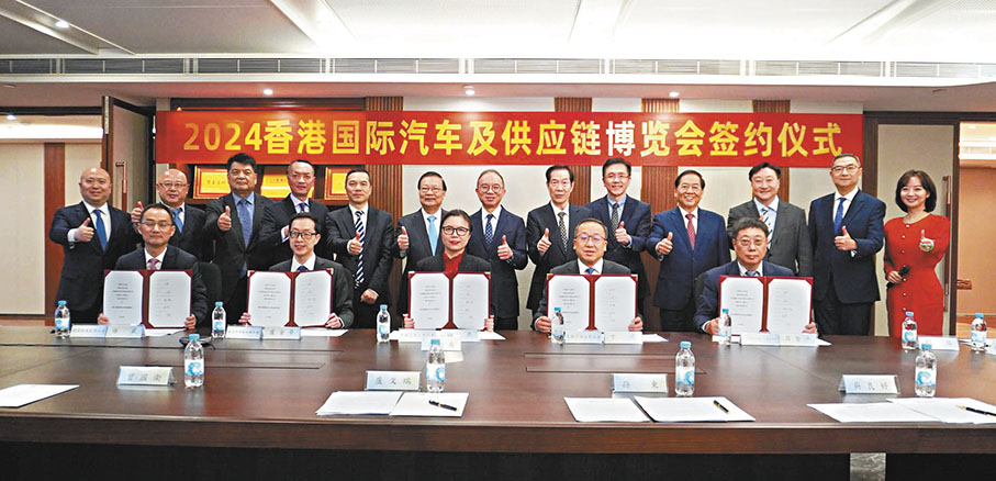 香港文匯報訊 中國汽車工業協會、香港中國企業協會、中國港澳台僑和平發展總會、香港中華廠商聯合會及鳳凰衛視有限公司等五家機構代表,4月19日在香港共同簽署了「2024香港國際汽車及供應鏈博覽會」合作協議。