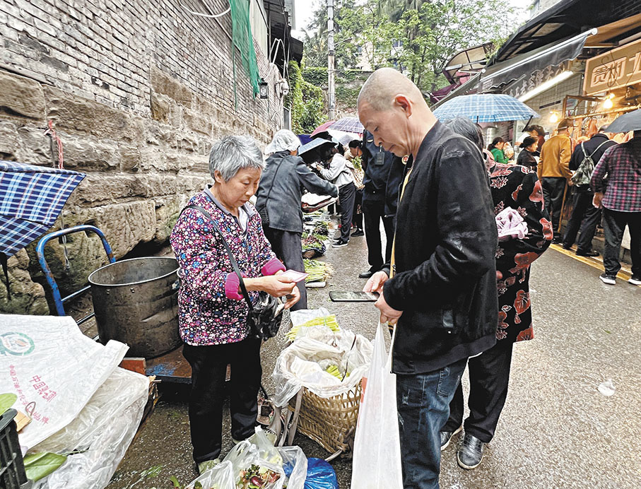 早上8時許,香港文匯報記者跟隨劉貴文一起到達觀音橋農貿市場,她嫻熟地走進菜市,找到一處人流量大的地方放下背簍,一邊和附近的菜販攀談,一邊擺好自家種的筍、魚腥草、豌豆。