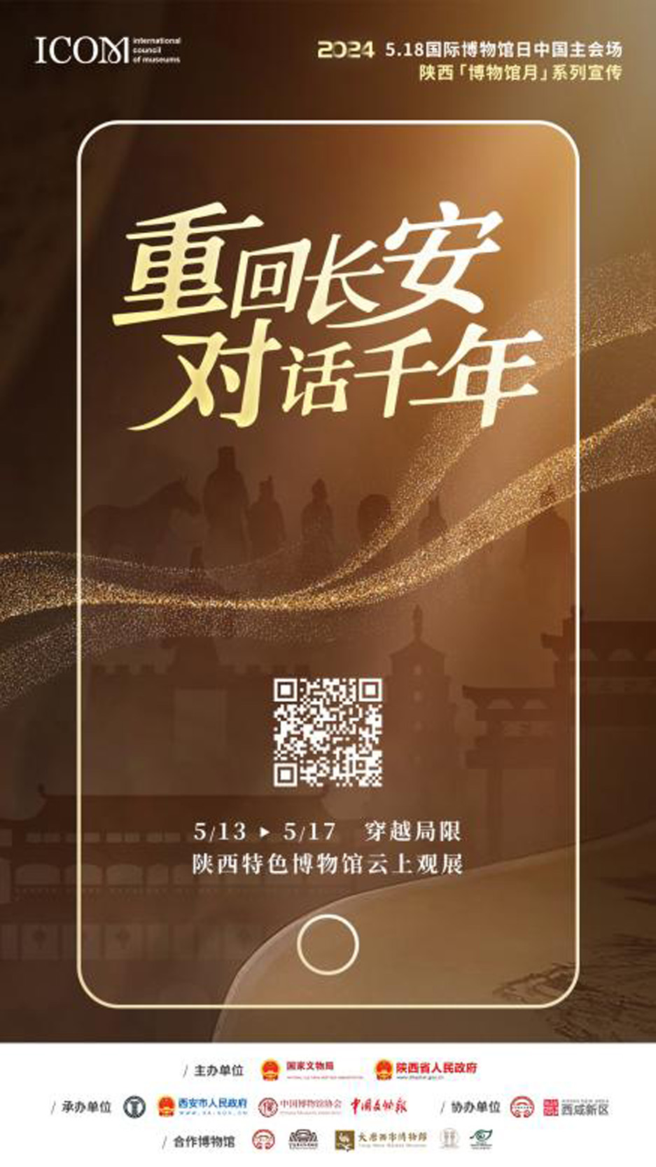 此外,5月8日至5月13日,「文脈守護 賡續綿延」3分鐘紀錄片每日發布1則,以文物修復師、博物館陳列部、保管部工作人員與學生、教授等相關特邀人士為主題,在不同社會角色的講述中感受他們對博物館的熱愛,對歷史文明傳承不忘初心的拳拳之情。5月13日至5月17日,「重回長安 對話千年」系列陝西省內知名特色博物館開啟在線直播,每日一館,邀您雲端看展。5月18日,5.18國際博物館日主會場活動在線直播盛大啟幕。