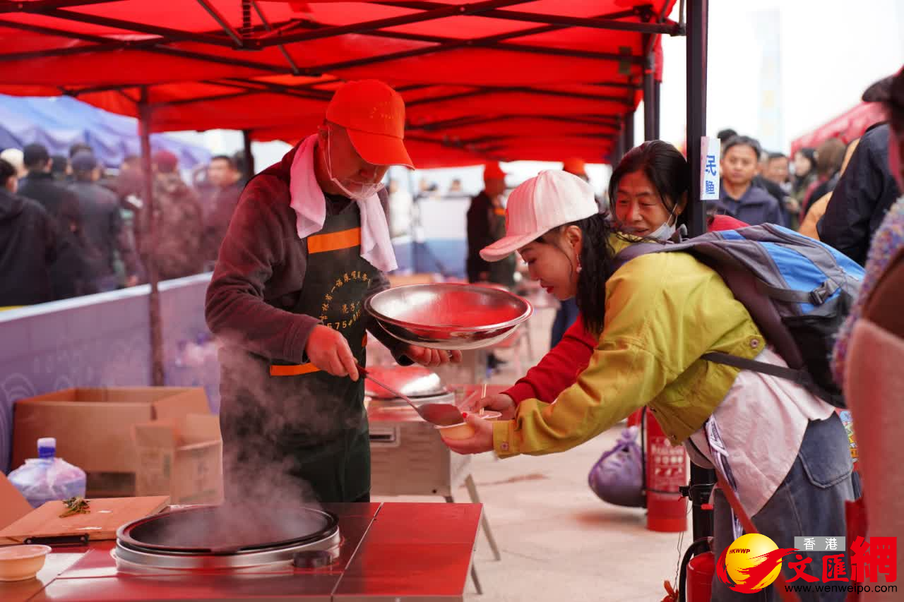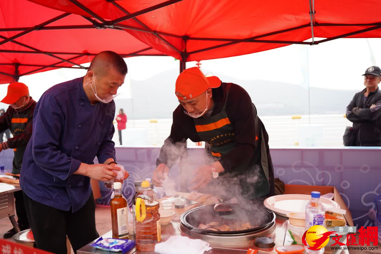 在活動現場,民間高手和專業廚師現場比拚、展示烹魚技藝。由兩位廚師長燒制的松花湖魚頭泡餅因其鮮美的香味吸引多位食客圍在竈台前,負責人喬煥玉向記者介紹:「這是兩位廚師的特色菜,已經做了將近20年了,參加活動希望和更多市民和遊客一起分享做魚技巧,讓更多人品嘗特色的吉林味道。」