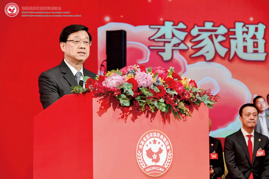 香港特別行政區行政長官李家超致辭表示,港區省級政協委員聯誼會一直秉承「服務國家、服務香港」的宗旨,多年來團結社會各界,為香港的建設出謀獻策,為國家的高質量發展作出貢獻。此外,聯誼會在香港邁向由治及興的道路上,一直堅持擁護特區政府,並積極向公眾說好國家故事,全力維護國家安全和香港穩定。他相信,在聯誼會第七屆理事會蘇清棟主席和霍啟山會長的帶領下,聯誼會將繼續做好「服務國家、服務香港」的工作,承先啓後,繼往開來,再創高峰。藉此機會,他向各位委員提出三點寄望。
