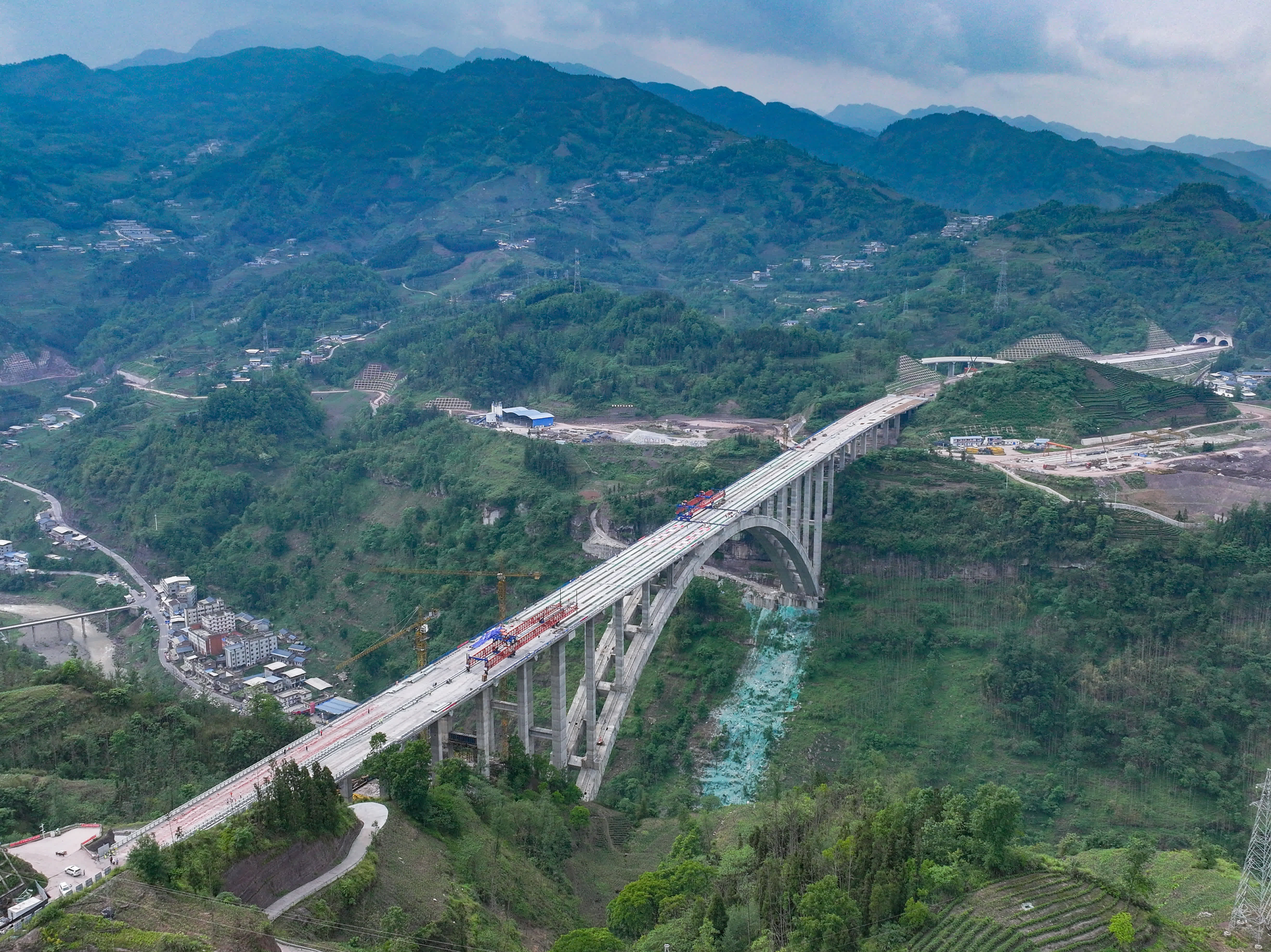 蘇壩特大橋位於樂山市馬邊縣蘇壩鎮,上跨馬邊河、G348國道。「大橋全橋長835.5米,主橋為跨徑370.5米上承式鋼筋混凝土勁性骨架拱橋,該跨徑在目前已竣工的同類型公路工程橋樑中位列全國第二,四川第一。」樂西高速S1-2項目經理部總工程師曾一峰稱。