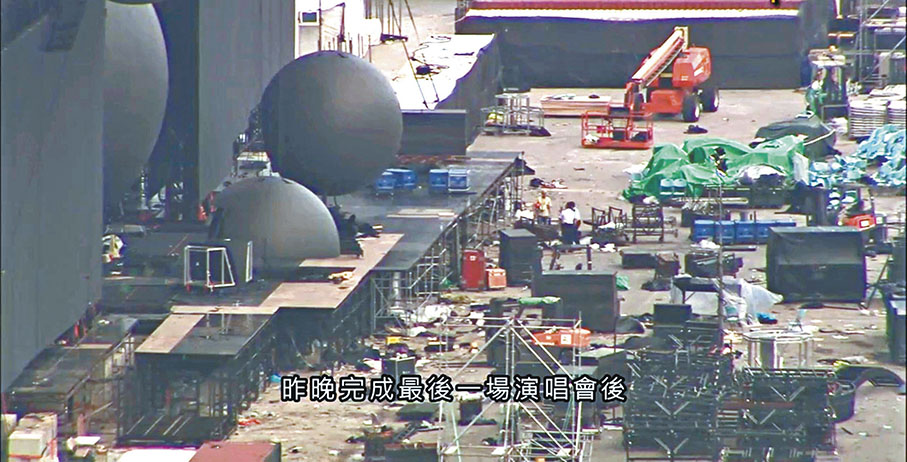 昨日清晨約5時許,一名姓梁(21歲)男工在民光街33號中環海濱活動場地,清拆樂團五月天演唱會舞台期間,從約兩米高鐵架失足墮下,倒地昏迷。其他工友見狀報警,救護員趕抵現場後,將事主送往瑪麗醫院搶救。案件列作「工業意外有人意外受傷」,意外原因有待調查。