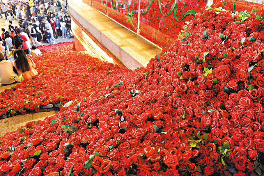 當東九龍文化中心LED玫瑰花掀起不美爭議,同樣在階梯上的仿真「玫瑰花」卻引來當地大批市民打卡,這兒是在福建福州「閩江之心」景觀帶,其獨特浪漫的景觀設置,特別是心形裝飾亦吸引民眾前去拍照。 ◆文︰綜合中新社報道 圖︰中新社