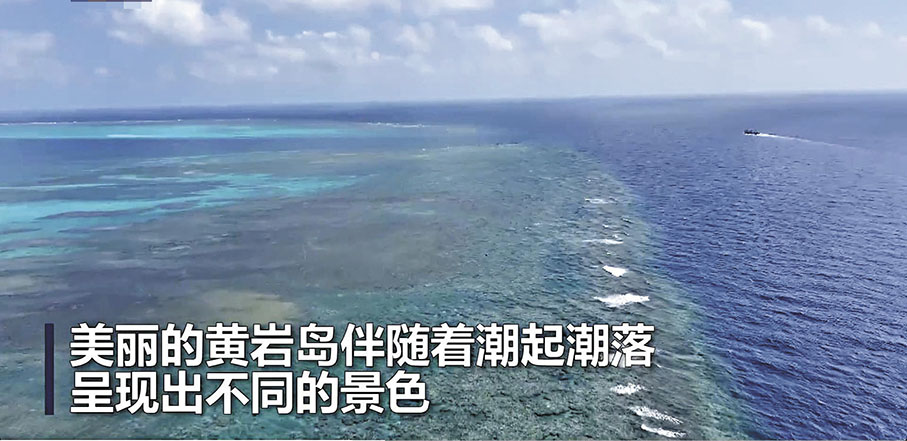 此外,央視13日還首次披露了黃岩島航拍視頻,近瞰中國黃岩島的壯麗風光,體驗潮平南海闊,浩蕩見碧波的絕美景致。視頻配文稱,初夏時節,中國南海風光旖旎。這個季節,美麗的黃岩島伴隨着潮起潮落,呈現出不同的景色。潮起時碧波蕩漾,如一顆明珠鑲嵌在南海上;潮落時礁石連片,像山川交匯於茫茫碧野。