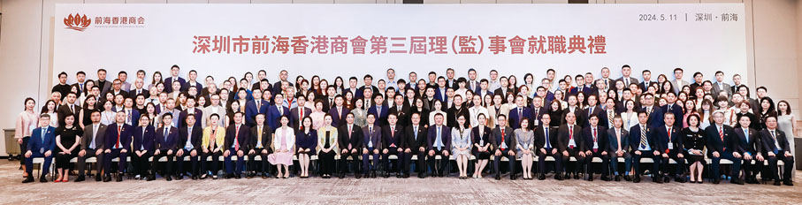 深圳市前海香港商會第三屆理監事會就職典禮日前(5月11日)隆重舉行,深圳市委常委、統戰部部長王強,市委常委、寶安區委書記、前海黨工委書記王守睿應邀出席主禮。全國政協常委、粵港澳大灣區企業家聯盟主席、新華集團主席蔡冠深被推選為商會第三屆會長。廣東省及深圳市有關領導、工商界知名人士、各商協會成員等300餘人出席了大會,共同見證慶典盛況。