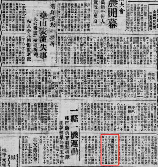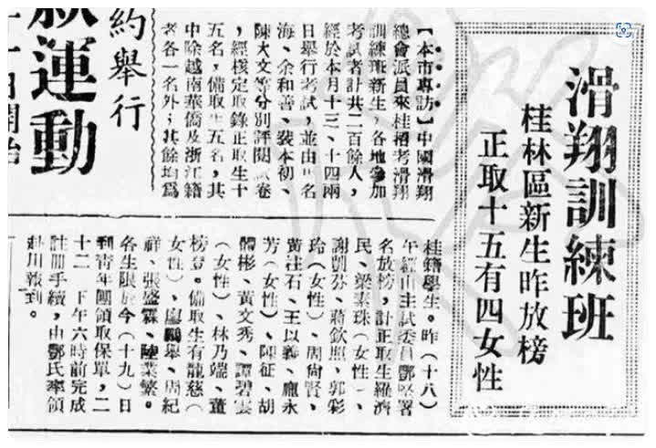 1944年3月1日《大公報》(桂林版)刊登《堯山表演失事》報道,同時證實1943年5月18日失事犧牲於成都鳳凰山的滑翔訓練班學員侯子勤為女性。