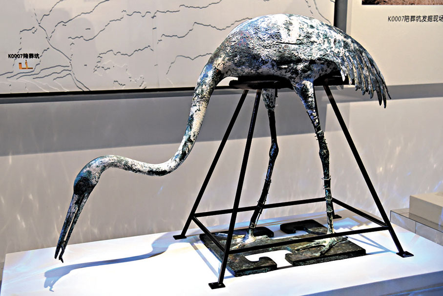 鮮活靈動的青銅仙鶴、手掌高舉姿態奇異的陶俑、其貌不揚的銹塊和殘缺的腳掌……「何止秦俑——秦陵苑囿之K0007陪葬坑」此前在秦始皇帝陵博物院展出。展覽第一次實現了秦始皇帝陵K0007陪葬坑出土文物大家庭的「小團圓」,57件青銅水禽文物和姿俑、跽姿俑文物首次集中展出,讓觀眾沉浸式走入K0007陪葬坑,了解那段被文獻記載所遺忘的歷史,體會兩千多年前秦人不為人所知的精神文化世界。◆文、攝:香港文匯報記者 李陽波 西安報道