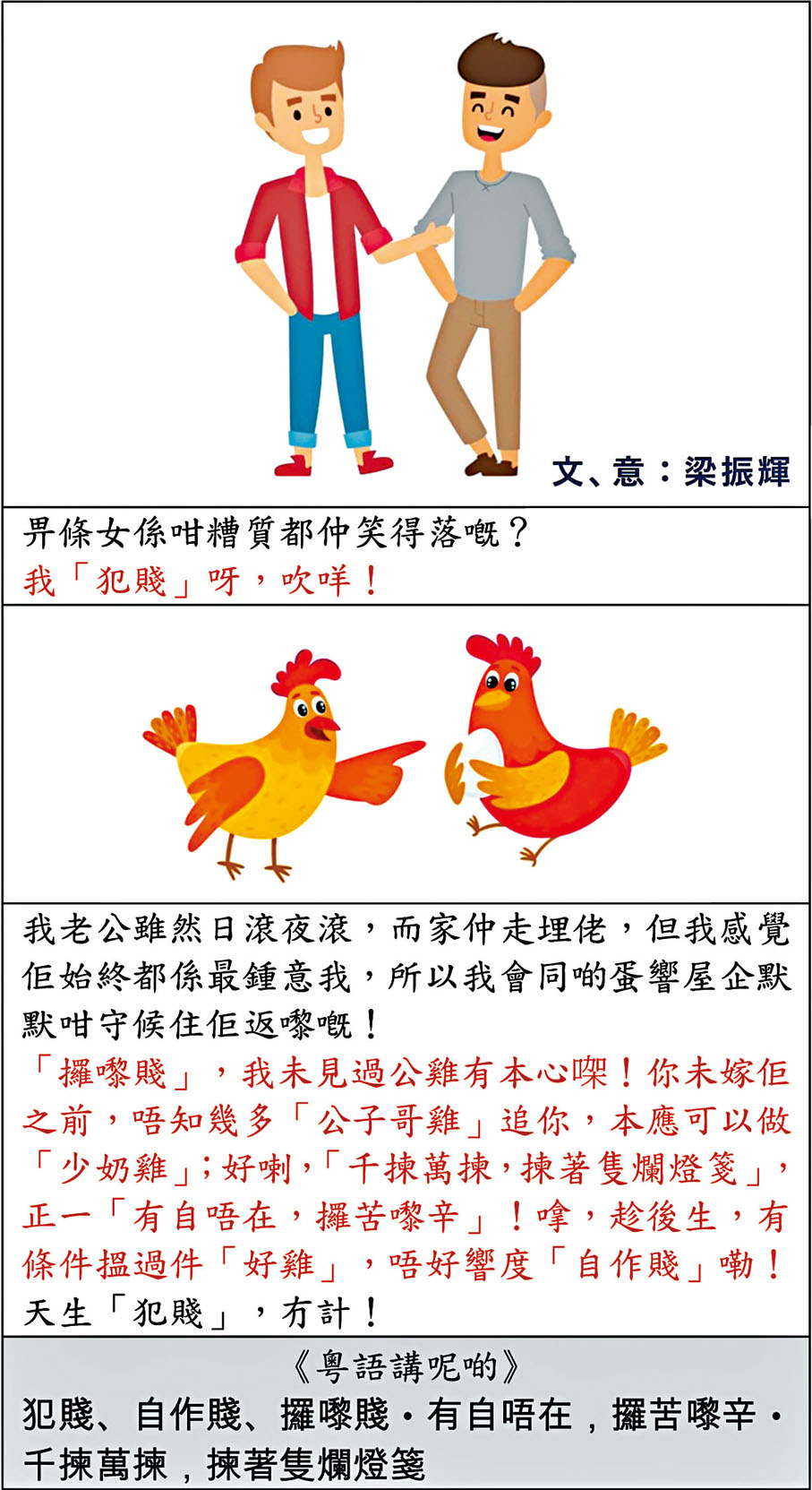 現實世界中,「犯賤」或「攞苦嚟辛」的人本可安然度日,卻「心甘命抵」(心甘情願)的自討苦吃、自找罪受,無論旁人怎樣去勸告他或嘲諷他,當事人依然故我,至死不悔。認識又或不認識筆者的人眼看本人多年來致力於「粵語保育及傳承」這種幾可界定為只有精神意義的工作,均報以奇異的眼光,刻薄點的還會說筆者「有自唔在,攞苦嚟辛」。從這七八個年頭在香港文匯報發表的相關文章以及這兩年多在YouTube發布的相關視頻,明眼人不難看到一點: