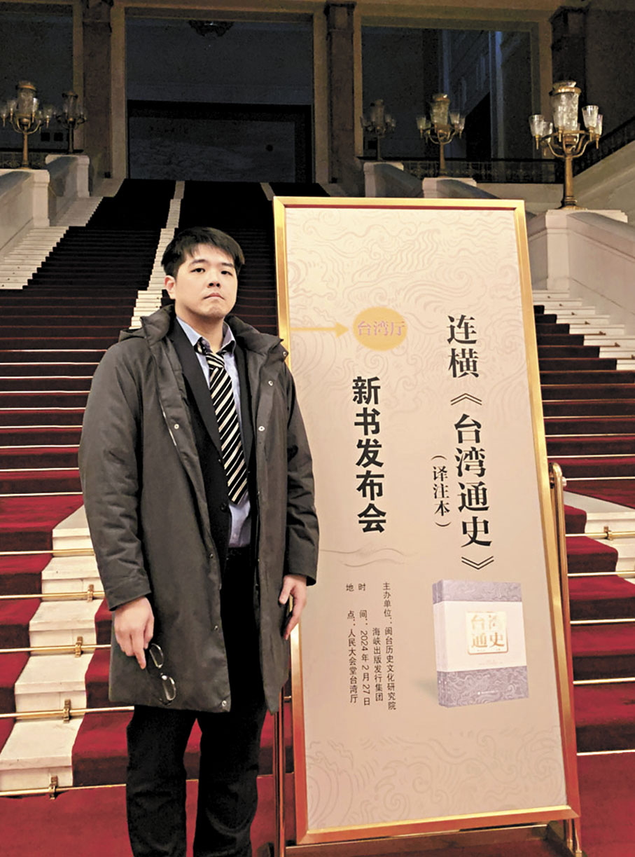 台灣著名愛國詩人和史學家連橫的著作《台灣通史》白話文版本今年2月在北京發布。參與這本著作白話文譯註工作的兩岸20餘位專家學者中,在福建師範大學(以下簡稱「福建師大」)文學院任教的台籍教師龐壯城,是這個團隊中最年輕的學者。六年前,龐壯城從台灣成功大學中國文學系博士畢業,轉身考入福建師大任教。師者、研究者、文化傳播者,龐壯城不僅在大陸「解鎖」了多重身份,更重要的是找到了盡己所長的土壤,一次次打開人生新視野、刷新人生新高度。龐壯城說,他想用自己親身發展經歷讓台灣島內的青年博士明白一個事實:大陸不缺少機會,只要你願意深耕這片土地,天地就在你的腳下,「不要自我設限,要敞開心胸,勇敢邁出第一步。」 ◆文:香港文匯報記者 蘇榕蓉 福州報道 ◆圖:香港文匯報福建傳真