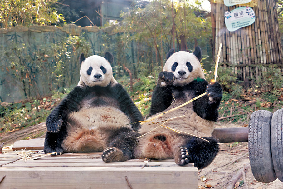 吳志文說:「很多母熊會在四五百天時驅趕孩子,讓牠們獨立成長,但國慶四百多天時還和媽媽關係好得像閨蜜,牠的體型又大又壯,還要騎在媽媽身上,兩個差不多大的熊貓,一個卻趴在另一個懷裏喝奶,遊客都替牠羞羞,給牠一個戒奶困難戶的外號。」