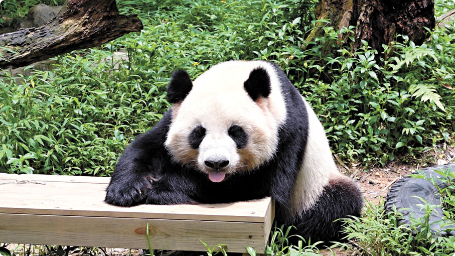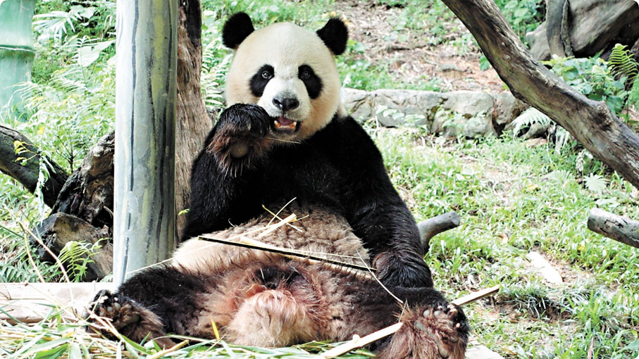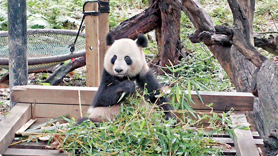 走進長隆熊貓館,第一隻外場熊貓就是婷仔,不管幾點去,會發現牠總是在吃個不停。「婷仔是非常貪吃的熊貓,不挑食,什麼都喜歡吃。牠的長相辨識度很高,臉部蓬鬆炸毛,如同一個白白胖胖的大饅頭,但是肚子又很黑,彷彿是個年畫娃娃。」