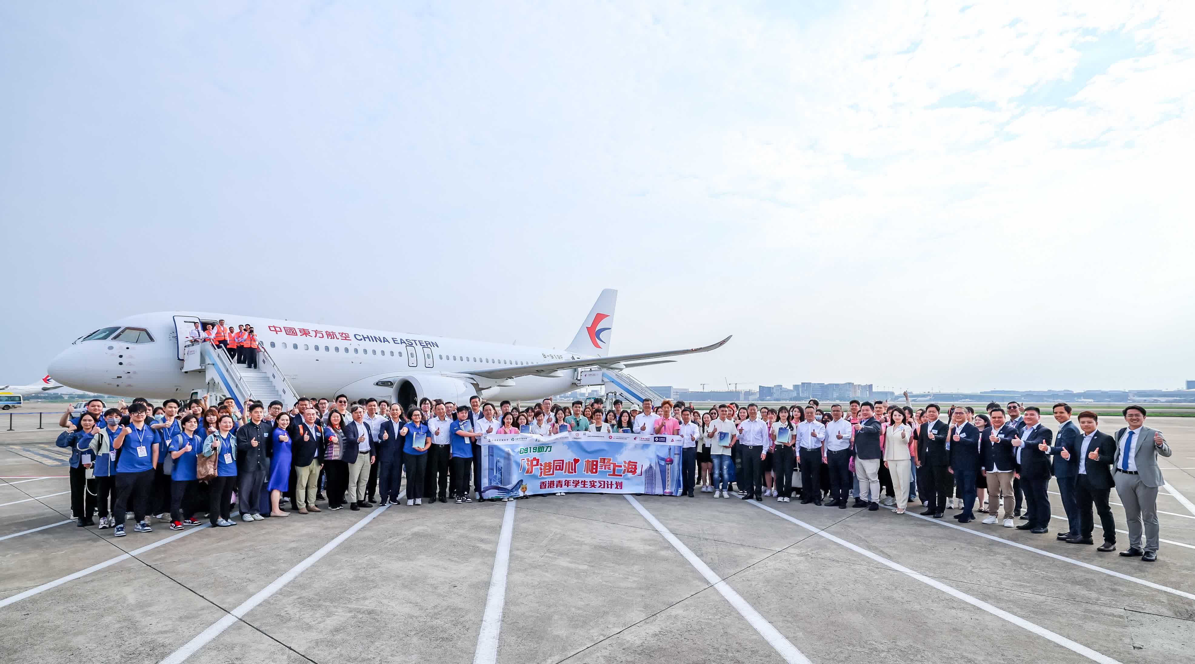 (香港文匯網記者 倪夢璟)6月1日,「滬港同心 相聚上海」 香港青年學生實習計劃正式啟動,120餘名港生乘坐國產大飛機C919從香港飛往上海,開啟在滬實習之旅。讓這些香港大學生激動不已的,不僅是對上海實習生活充滿期盼,並且他們還作為乘客見證了C919國產大飛機的首次跨境商業飛行,感受到國家的發展、民族的振興,自豪之情油然而生。隨着大飛機抵滬,滬港兩地青年交流開啟新篇,兩地青年也將攜手共創更加美好的未來。
