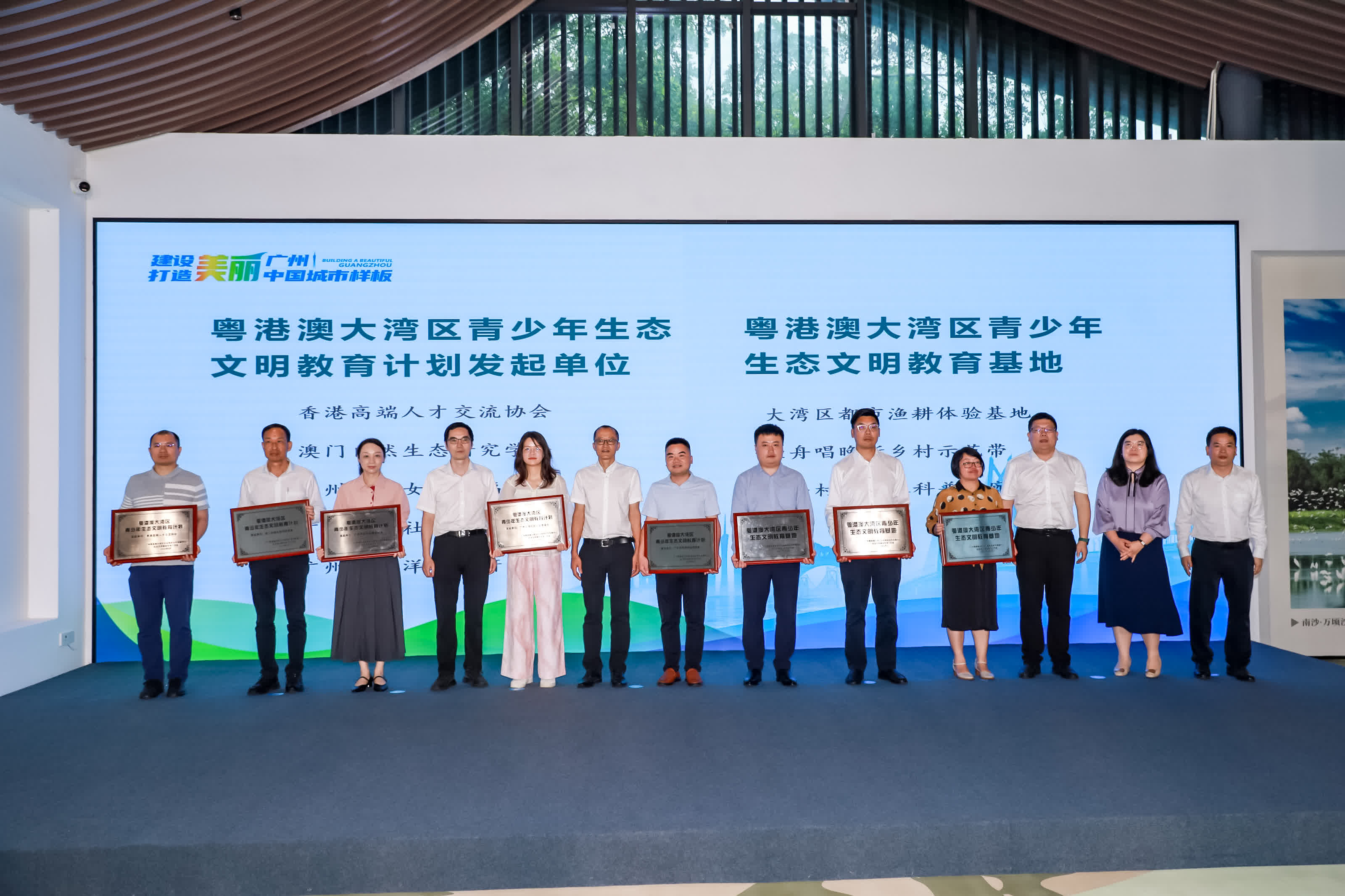 「粵港澳大灣區青少年生態文明教育計劃」是為聯合粵港澳大灣區致力於青少年生態文明教育的社會組織、科研院所等單位積極開展青少年生態文明教育而發起的項目,集合了政府、社會組織、企業等多方資源共建共享。當天,香港高端人才交流協會、澳門自然生態研究學會、廣州市婦女兒童福利會、廣州法澤社區公益基金會、廣州市海洋雙碳研究會等5家社會組織作為「粵港澳大灣區青少年生態文明教育計劃」的第一批參與單位,獲授牌「發起單位」;大灣區都市漁耕體驗基地、漁舟唱晚新鄉村示範帶以及坦頭村紅樹林科普長廊等3個基地,獲授牌「粵港澳大灣區青少年生態文明教育基地」。