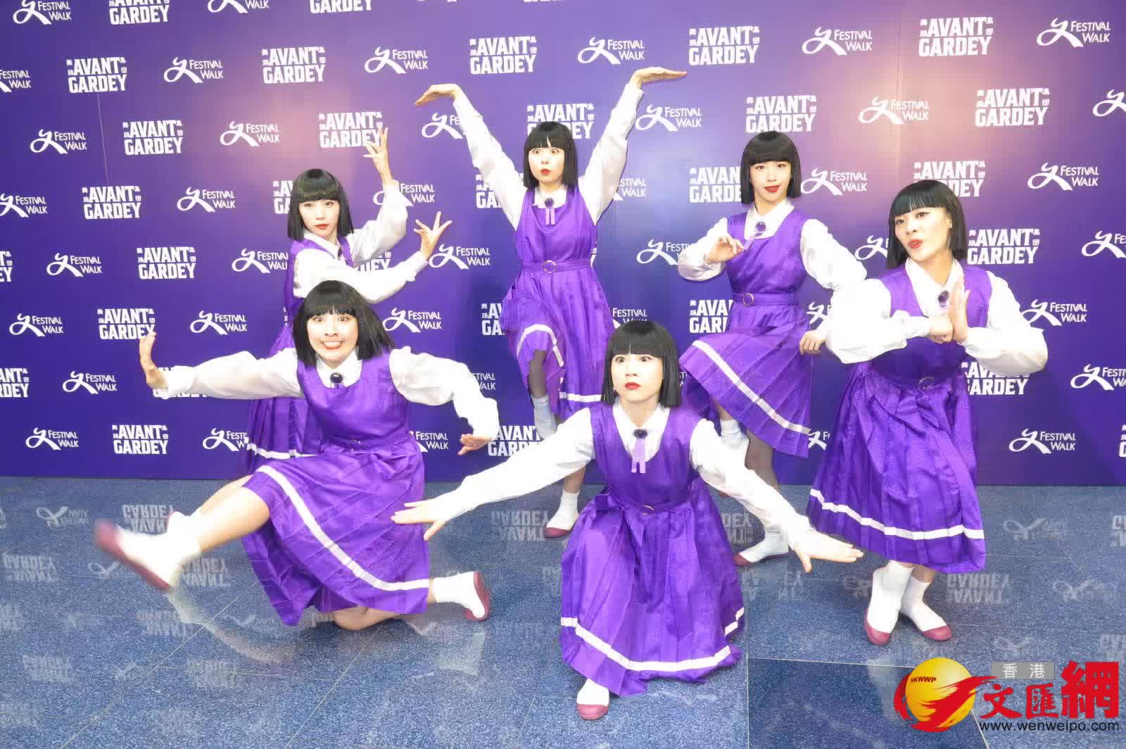 香港文匯報訊(記者 阿祖)日本人氣女子舞蹈團AVANTGARDEY首個海外期間限定店今日揭幕,今次只6位成員Pani、Nagano、Kohana、Seira、Nona、Sono來港出席,仍吸引逾百市民圍觀,她們更即場表演三首歌曲舞步,包括熱爆網絡的《打雀英雄傳》及全新演繹古天樂的經典歌《今期流行》,當中有參照古仔的「拜神舞」。