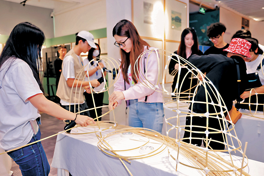 近兩米長的竹條,被一雙雙巧手扭成不同大小的圓圈,這些竹圈被竹條固定後,再用繩子結實地一抽,一個個麒麟頭骨架就昂然立起來了。5日,中國第八個文化和自然遺產日到來之際,「看見手藝 遇到嶺南」文化遺產周活動在暨南大學正式開幕。來自港澳和內地的學生踴躍體驗非遺手藝,齊齊紮起舞麒麟所用的麒麟頭骨架。來自深圳的麒麟舞傳承人鄧主文告訴香港文匯報記者,自從去年恢復通關後,從香港到深圳寶安學習紮麒麟和舞麒麟的香港青年明顯多了起來。「每逢節假日舞麒麟時,香港遊客都蜂擁而至。作為傳承人很開心看到大家對大灣區的非遺傳承感興趣。」