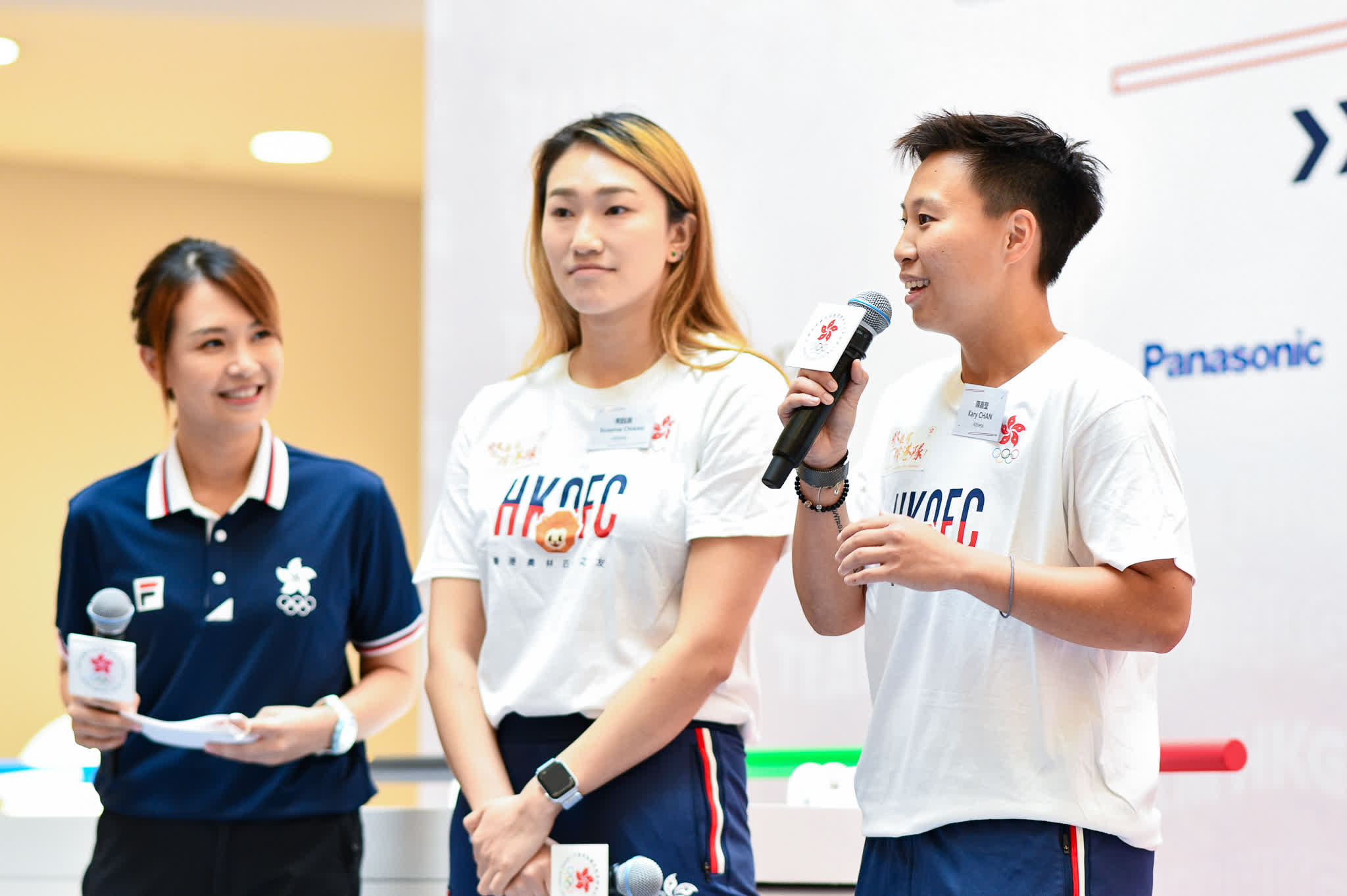 為港隊奪得巴黎奧運會入場券、剛在2024世界盃瑞士站男子輕量級單人雙槳為港隊賽艇摘下首面世界大賽金牌的趙顯臻、游泳運動員常鈺涓及板球運動員陳嘉瑩出席支持活動,各自分享對巴黎奧運的期待。