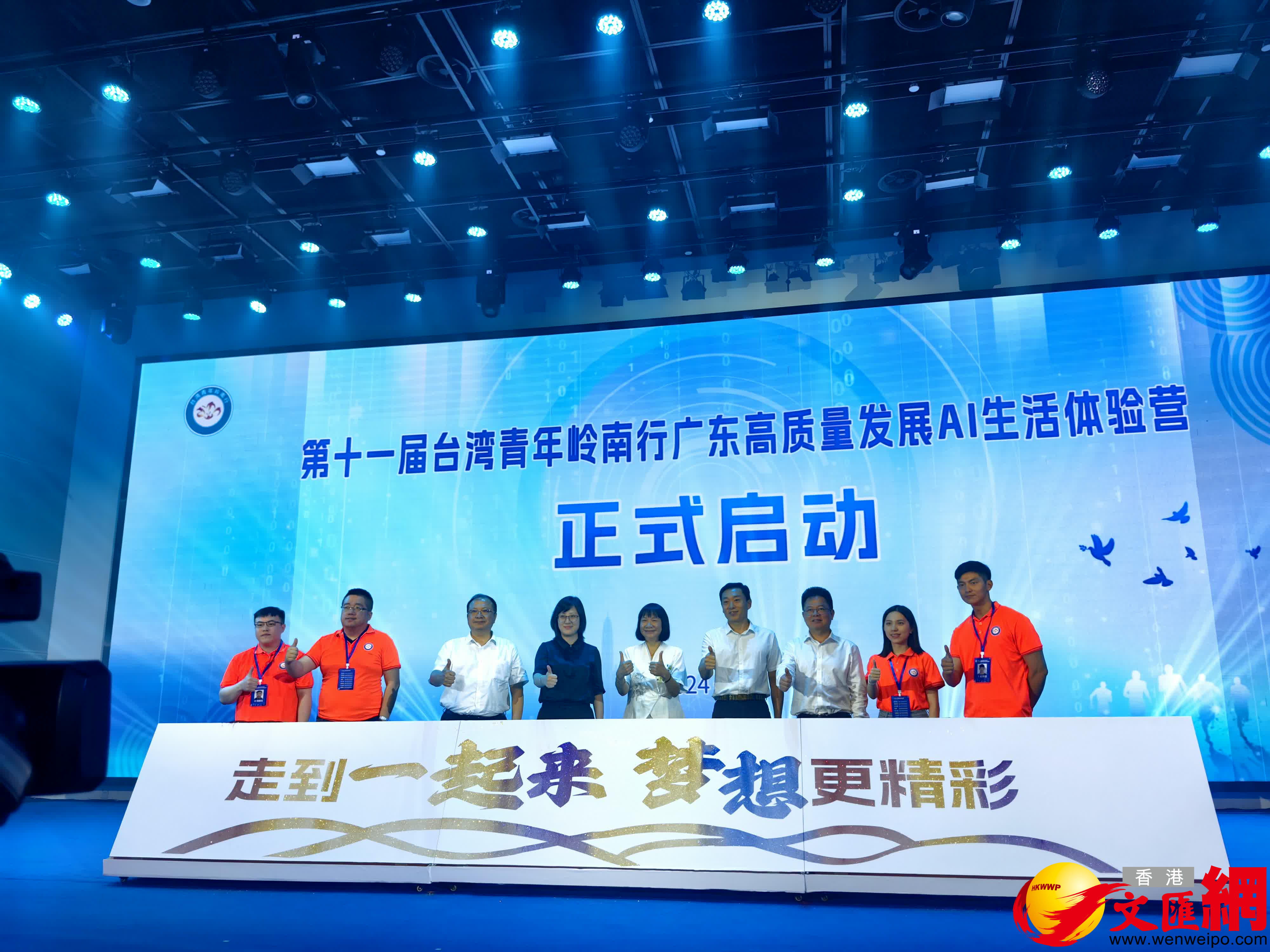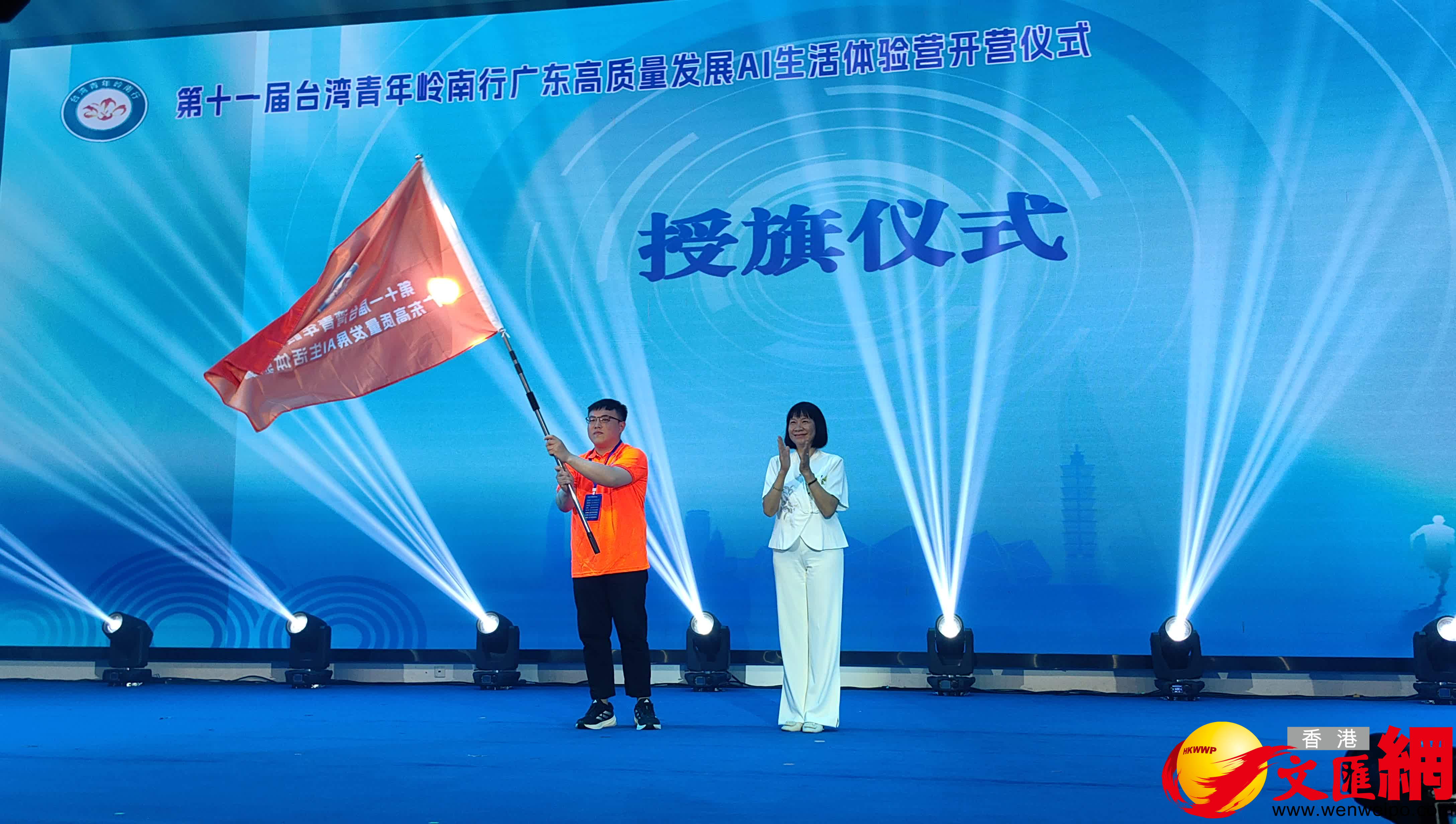 廣東省台辦副主任黃兆芬在開營儀式上向營員代表授旗。隨後,領導嘉賓與兩岸青年代表共同為展板注入彩砂,白板上逐漸浮現「走到一起來,夢想更精彩」的字樣,標誌着本次活動正式拉開帷幕。