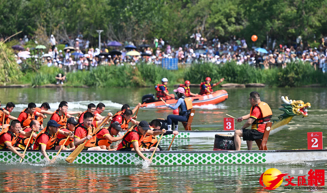 (香港文匯網記者 馮雷)飛槳逐浪賽龍舟,競渡場上迎端午!又到一年端午節,2024年河南省社區運動會端午節主題活動龍舟比賽10日在鄭州賈魯河杲村湖開槳,來自該省35支隊伍近700名選手激情揮槳、奮勇爭先,為鄭州市民上演了一台「龍舟競渡」的好戲。