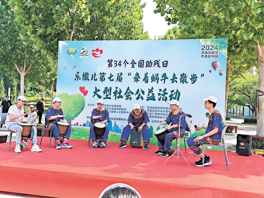 近日在濟南高新區舉行的「牽着蝸牛去散步」大型徒步公益活動現場,樂橄兒「高矮胖瘦」樂隊表演的《孤勇者》讓台下的許多觀眾熱淚盈眶。他們的音樂或許並不完美,但卻用認真和執着向世界傳遞他們的聲音和力量。