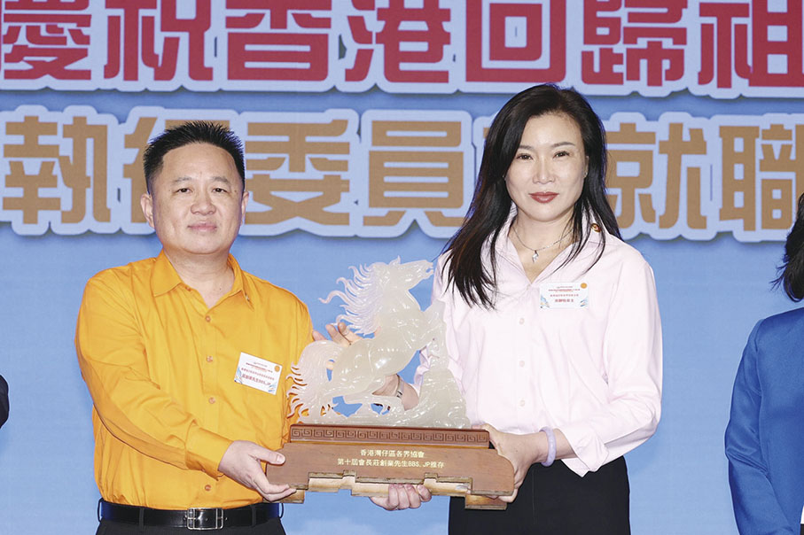 佘靜怡榮膺新一屆主席,並聯同香港特別行政區律政司副司長張國鈞,中央政府駐港聯絡辦港島工作部部長薛惠君,中央政府駐港聯絡辦港島工作部副部長王卉,民政事務總署署長張趙凱渝,全國政協委員、香港島各界聯合會理事長蘇長荣,全國政協委員、立法會議員李鎮強、邵家輝,立法會議員梁熙、陸瀚民、郭偉强和灣仔民政事務專員張雁伶等出席並主禮。各界嘉賓共同見證新一屆執行委員會就職,場面熱鬧。出席的嘉賓還有:創新科技及工業局局長政治助理廖添誠、香港廣東社團總會常務副主席葉振南、香港海南社團總會常務副會長符文靜、香港福建社團聯會港島東分會執行會長柯文華、香港灣仔區各界協會首席永遠會長莊創業、會長鄭承峰、副主席兼大會主席潘桂桃、常務副主席劉珮珊等,並由宋芝齡和黃守東擔任大會司儀。