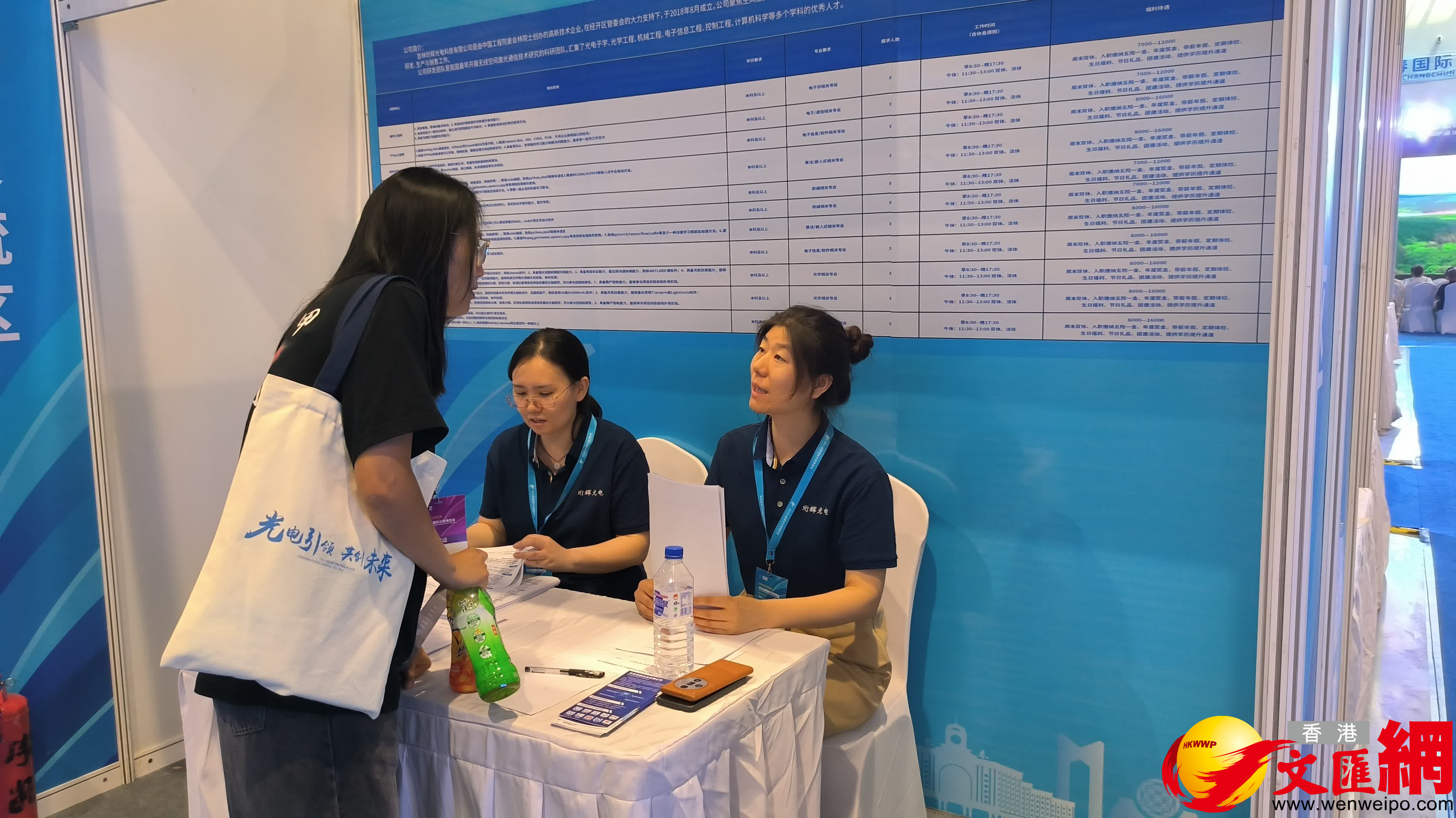 吉林珩輝光電科技有限公司主要從事激光通訊行業,是此次的參展企業,同時也在光博會上設置了招聘席位。「我們從光學、機械、色譜、電子學等專業提供了13個崗位,由於目前公司對人才的需求還是比較大的,這次準備招聘30到50個應屆畢業生。」珩輝光電副總經理尹莉向記者介紹。