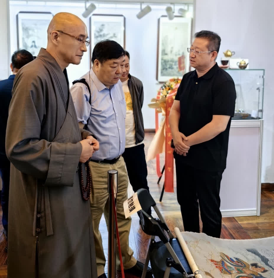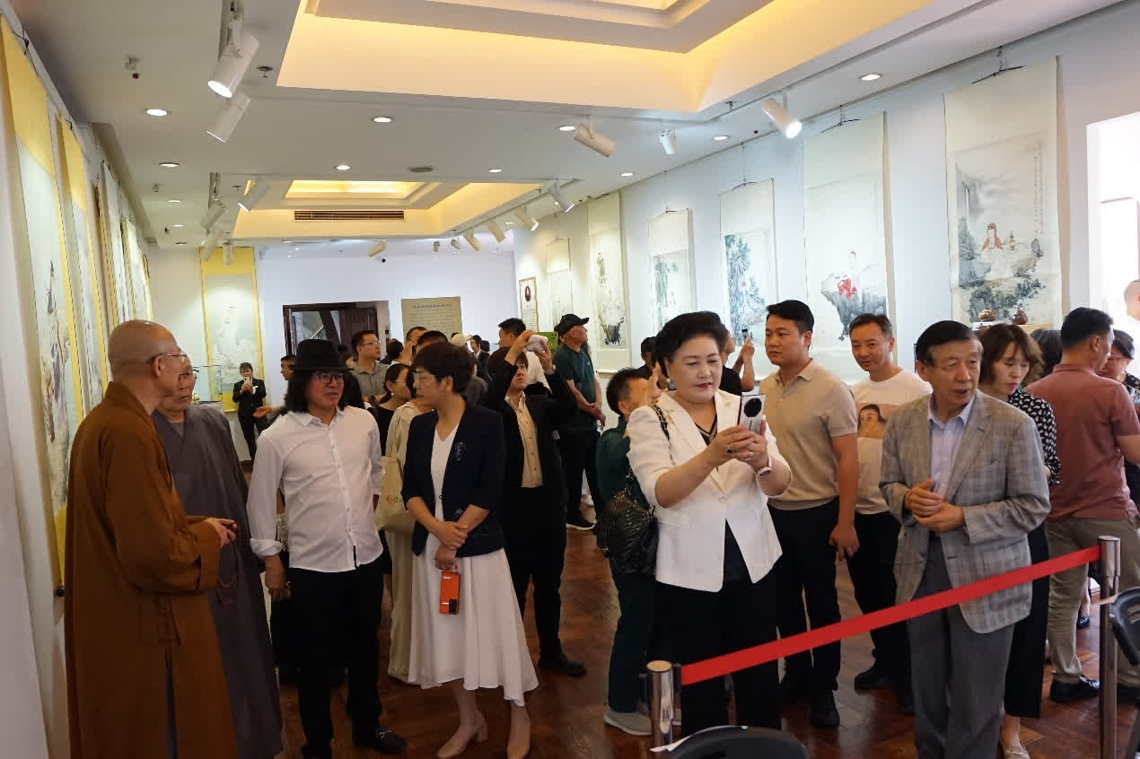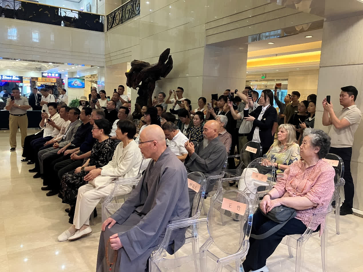 荊山畫院主理人夏圭君女史在開幕致辭時,回顧了夏老居士創辦畫院的心路歷程,稱繪佛是超俗的藝術,對於釋仁悟繼承乃師遺志、傳承禪畫法脈的篤行善舉給予高度評價!是展顧問徐華翔先生簡述了活動緣起和舉辦的初衷,仁悟法師答謝詞以佛教藝術的發心為國家獻禮、為民族祈福,並預祝國慶七十五周年華誕!展覽開幕後,各方人士駐足於仁悟法師歷時兩年創作長達五米的千手千眼觀音絹本巨帙前,無不由衷讚嘆,紛紛合影留念,共感法喜。