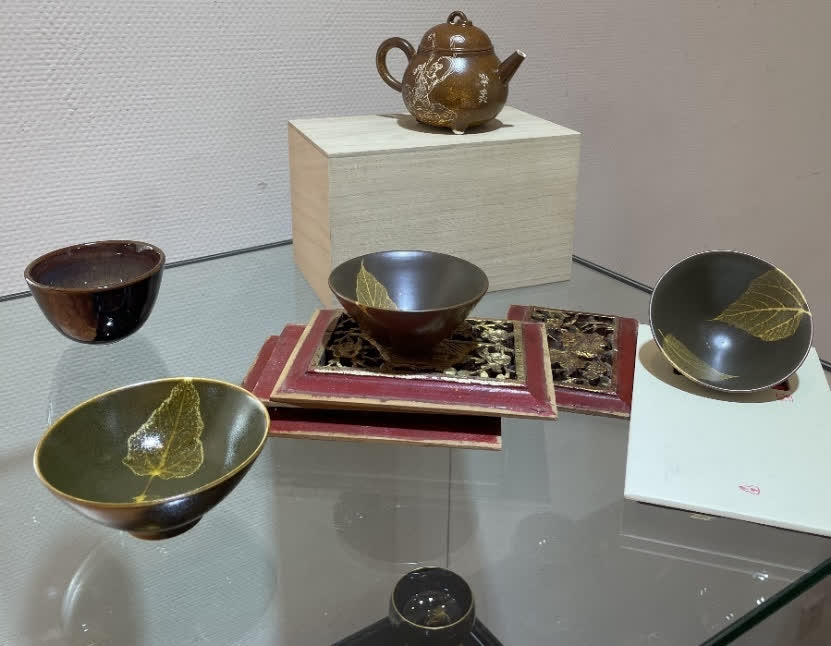江西吉州窯木葉盞非遺技藝傳承人曹錕先生為到場人士解讀了千年木葉茶器的流變與演進,其嘗試創燒的木葉天書品種,紋樣清晰,線條洗鍊,鏨刻精雅,色澤肅穆,堪為當代茶器大珍,來賓為之激賞,獲致嘉譽!同時曹老師現場演示了葉浮於水的幻化玄妙意趣,觀者無不嘖嘖稱奇,大飽眼福!