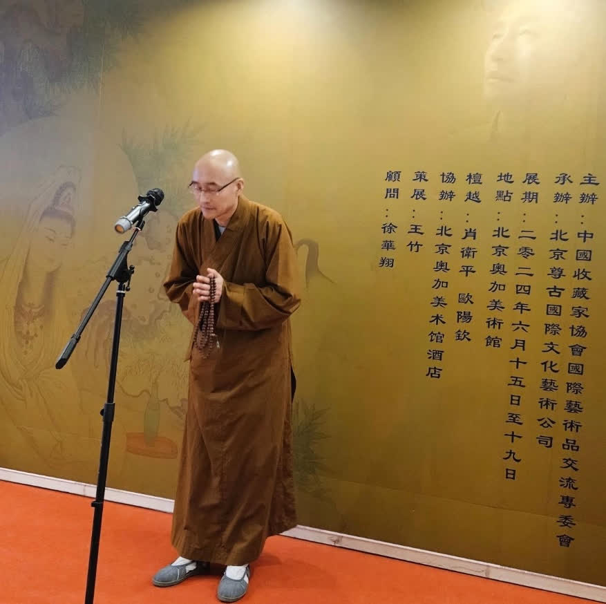 日前由中國收藏家協會國際藝術品交流專委會主辦的「仁悟大師禪畫公益特展」暨「禪茶之薈」雅集活動於北京奧加美術館圓滿告竣,江西吉安地藏寺住持釋仁悟佛畫作品及其手制鎏金佛造像首度於京公展,同場呈現的還有吉州禪意木葉茶器。
