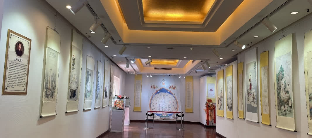 是次特展藝術家仁悟法師字覺性,丙午年重陽日誕於齊魯菏澤藝術世家,幼承庭訓隨父習畫。年二十有七皈依三寶,建寺安僧,四方參學,其間幸入佛畫暨國學宗師夏荊山大居士門牆,親炙恩師夏老善法雨露,承其絕學,並深得先生禪機繪技之法嗣!藉丹青妙法,結無上佛緣;慈悲行孝,溢於筆端。他既是潛心研修佛學的禪師,亦是發願繪製寶相住世的藝僧!
