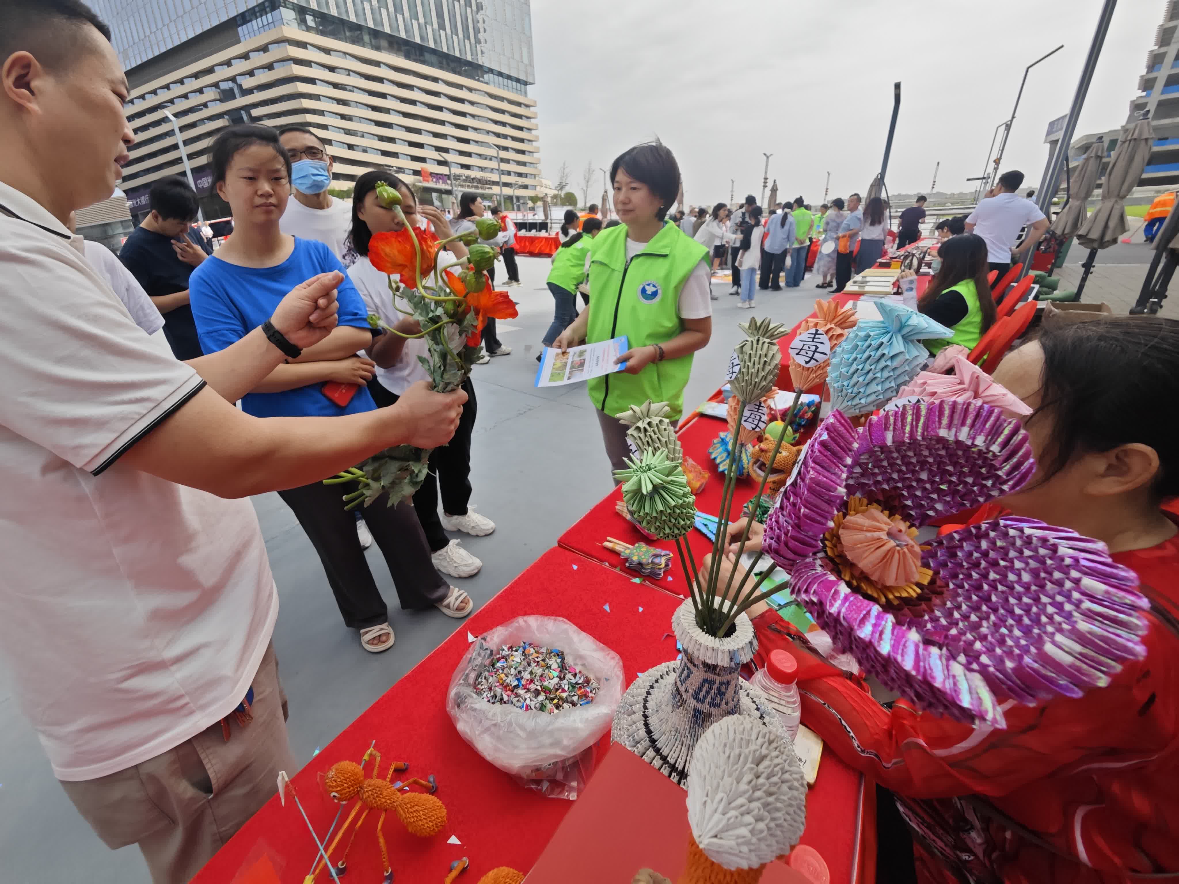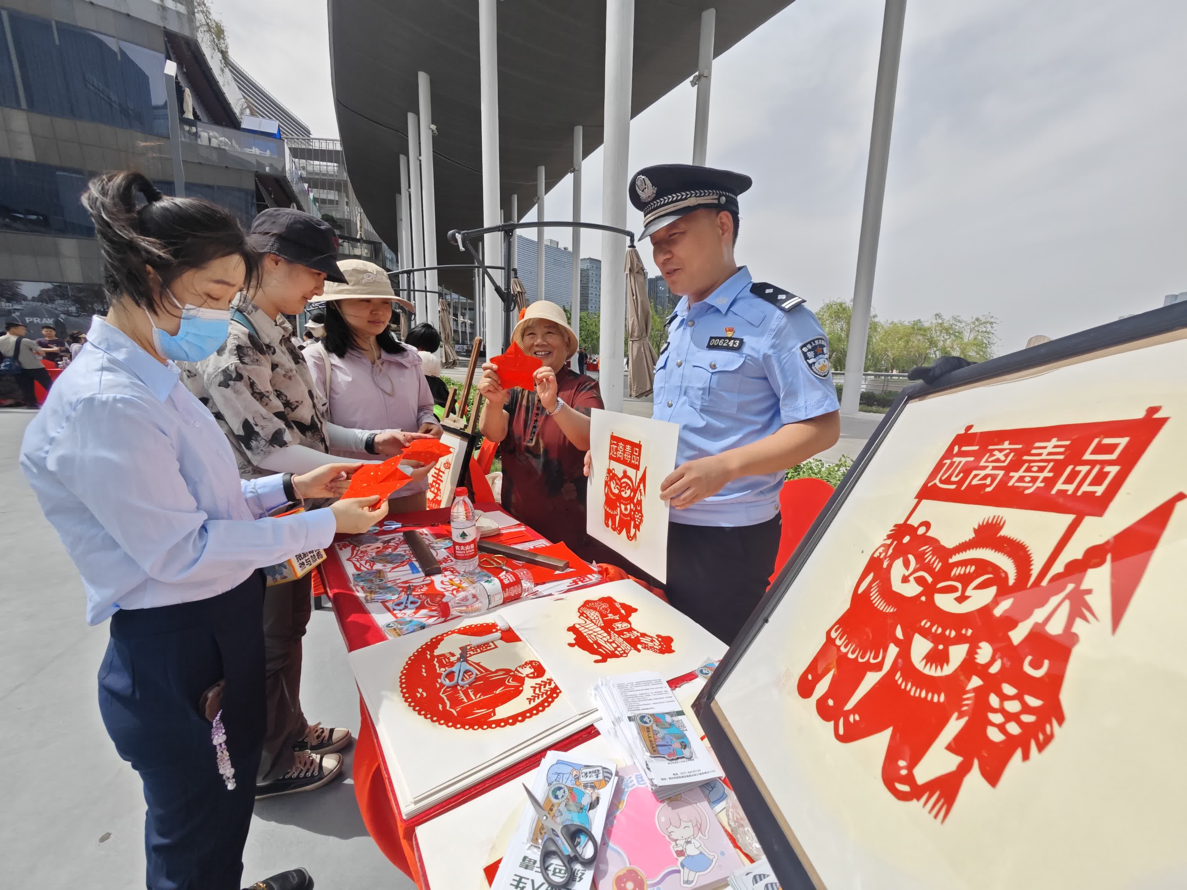 活動現場,主辦方將禁毒知識與傳統非遺文化相結合,推出牡丹香包、靈寶剪紙、多彩紙雕、宋史風箏、木板年畫、漆扇、糖畫、蛋雕等非遺文化禁毒攤位,「禁毒拒毒」香包刺繡,雞蛋殼雕禁毒卡通吉祥物「少小林」、剪紙阿牛禁毒卡通形象大使、紙雕罌粟果、罌粟花、禁毒糖畫等亮相,供市民觀賞體驗。