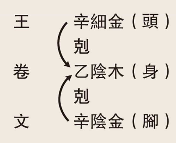 首先姓名的頭身腳的概念,屬於中間身的概念的文字「卷」字,顧名思義就是蜷曲的意思,加上兩個辛金無情打絕中間乙木的五行,身體蛋白質出現異變,自然出現駝背之象。