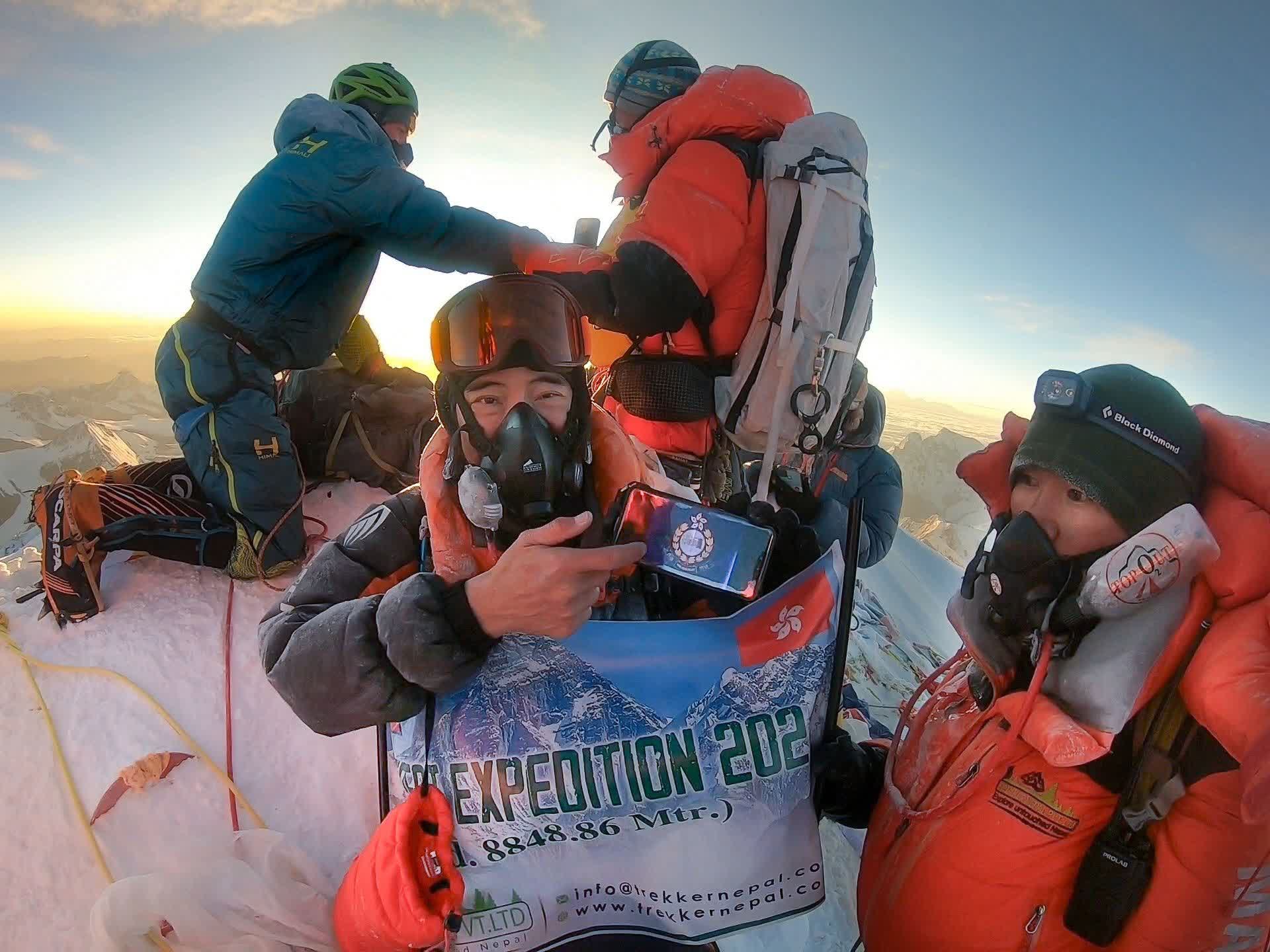 今年4月他到尼泊爾登峰,抵達海拔7600多米時感到極度不適、頭昏腦脹、手腳無法協調,死亡感覺驟然而生,需要加氧才撐到營地。幸好經過一天休息情況好轉繼續前行,惟在攻頂前的關鍵時刻又一度因氧氣樽插頭突然漏氣無法前行,幸獲嚮導協助提供後備插頭化險為夷,終在5月21日清晨成功登頂,戰勝海拔8848米的世界第一高峰珠穆朗瑪峰。