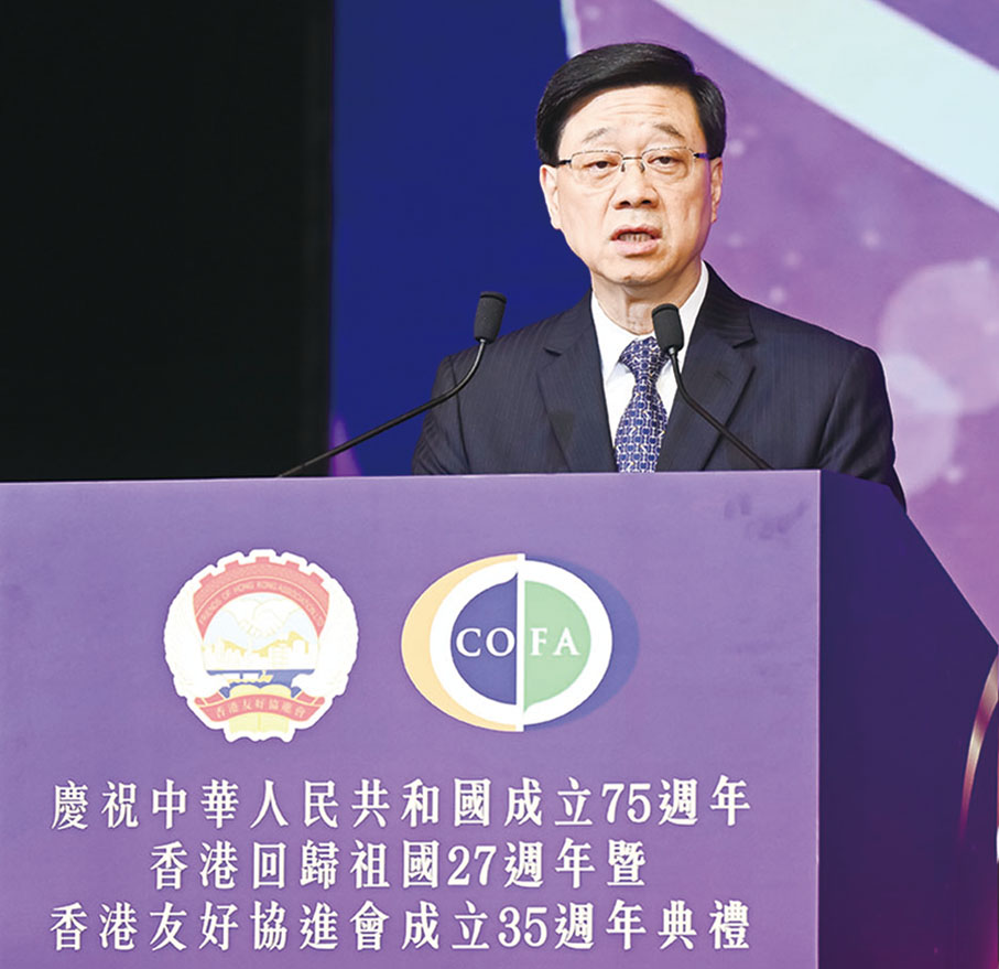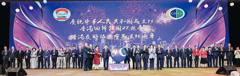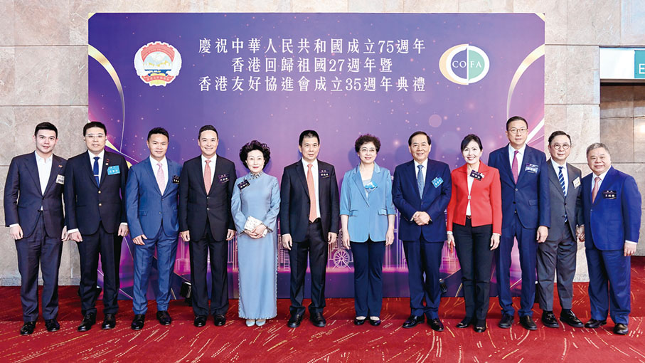 香港友好協進會慶祝中華人民共和國成立75週年、香港回歸祖國27週年暨香港友好協進會成立35週年典禮,6月13日在香港會展中心隆重舉行。香港特區行政長官李家超、中央政府駐港聯絡辦主任鄭雁雄、全國政協副秘書長鄒加怡、全國人大常委會代表工作委員會主任郭振華等出席主禮並致辭。李家超致辭時提出四點期望,冀協進會團結奮進為香港發展出謀獻策,繼續做好「服務國家、服務香港」的工作。鄭雁雄致辭時,希望協進會繼續秉承創會宗旨,堅定愛國愛港立場,廣泛凝聚建設香港的積極力量,團結奮鬥立新功。香港友好協進會會長譚錦球致辭時表示,國家蓬勃發展和香港的重新啟航為友好協進會提供了良好機遇,協進會將發揚傳統、守正創新,在服務國家、服務香港和服務會員的道路上繼續前進。