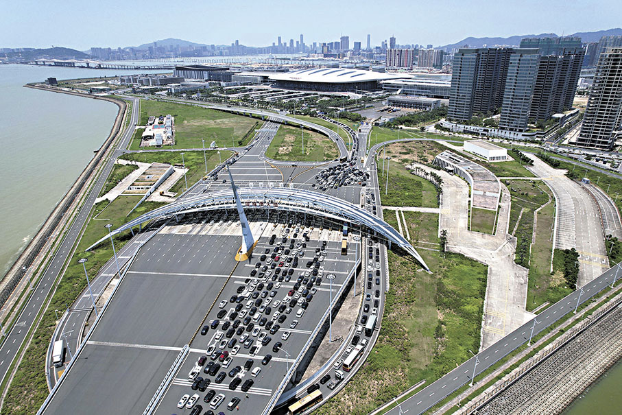 ◆周末及節假日期間,大橋珠海口岸日均客流、車流分別達到8.1萬人次、1.8萬輛次,是平日的1.6倍和1.4倍