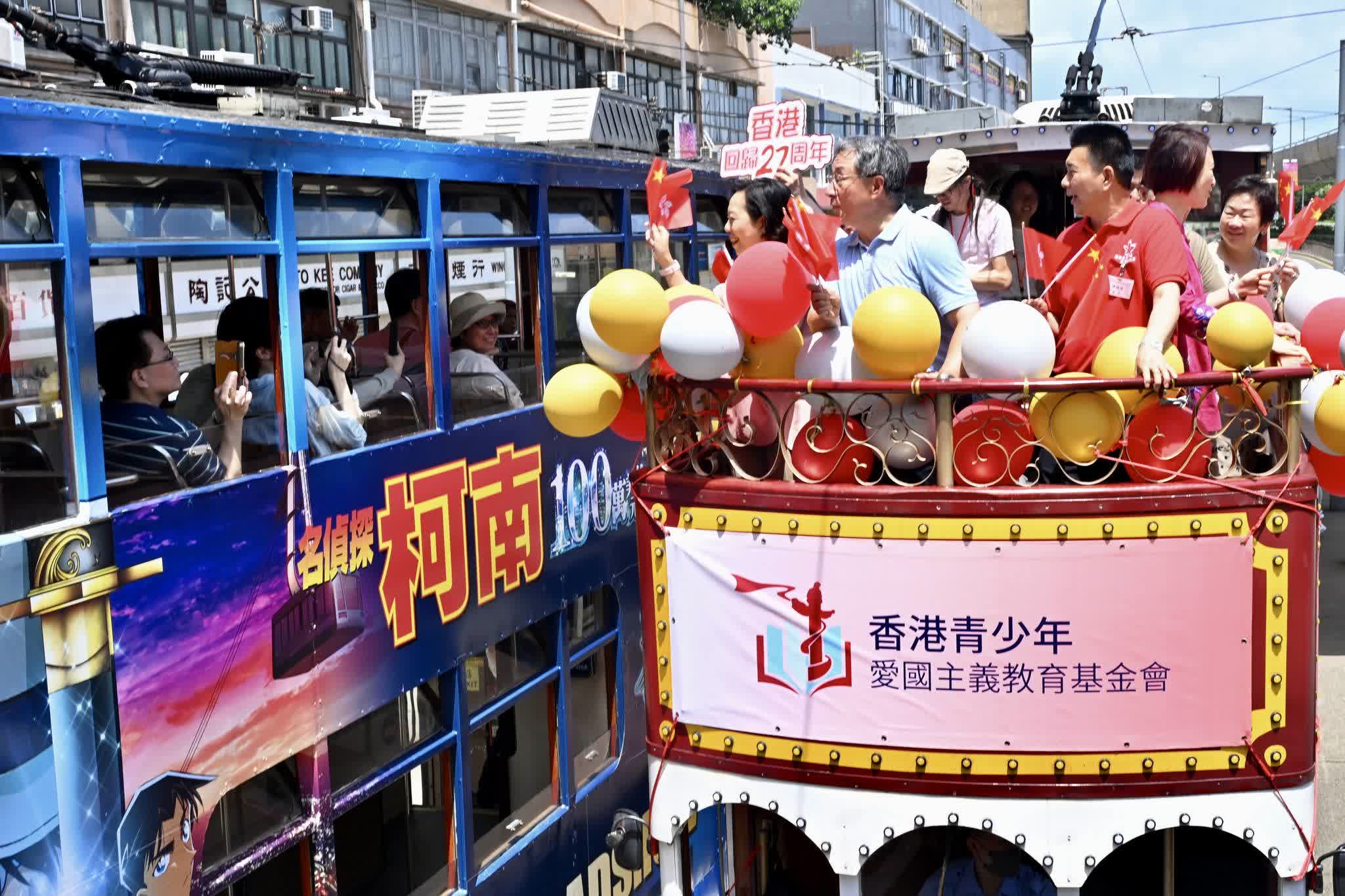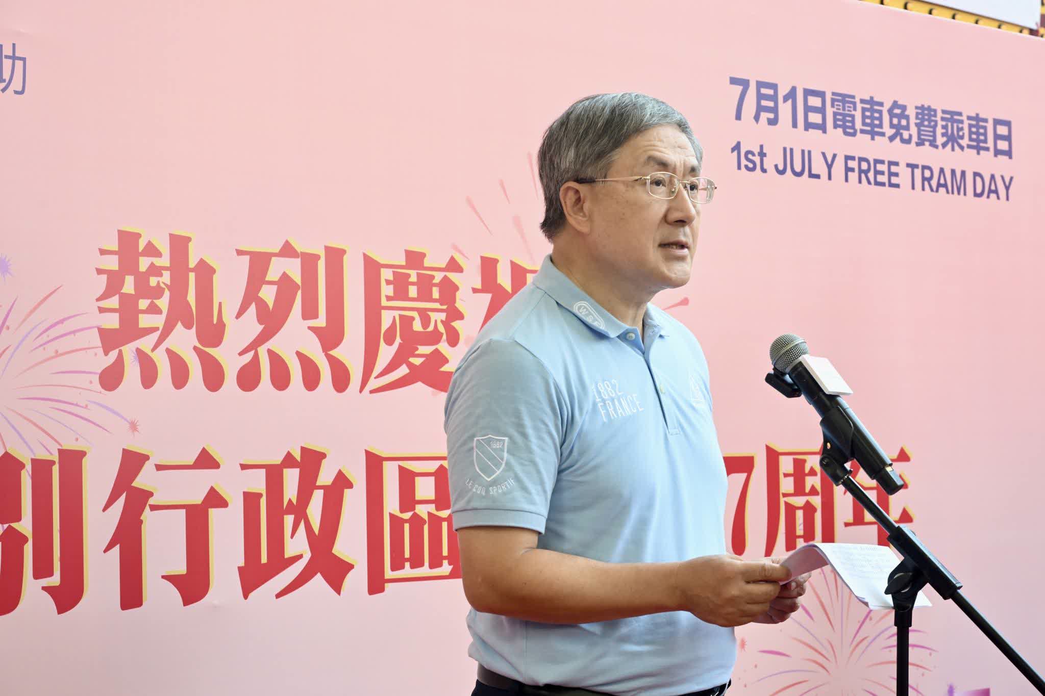 今日7月1日可免費搭電車。香港青少年愛國主義教育基金會贊助市民和遊客免費乘搭電車出行和欣賞沿線社區的不同風貌。署理政務司司長卓永興今早出席啟動儀式致辭指,鼓勵大家在享受輕鬆愉快的旅程之餘,多利用此方便參與各式慶祝活動,一同感受社區熱鬧歡樂的氣氛。本屆政府在「七一」推動林林總總的優惠和活動,正正是希望市民通過多參與其中,直接感受「七一」回歸的喜悅和意義,培養市民的愛國情懷。