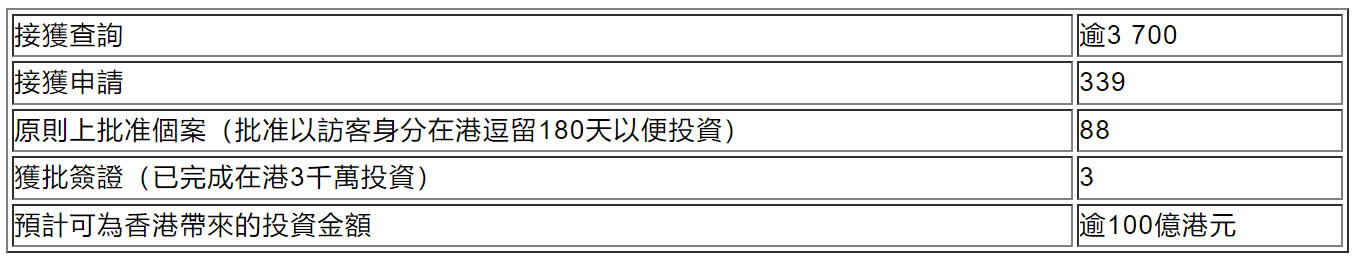 投資推廣署署長劉凱旋表示:「『新計劃』為香港帶來多元且龐大的人才庫,當中吸引了經驗豐富的商人和創新企業家,如超過300個申請個案全數獲批,預計可為香港帶來超過100億港元的資金,增強香港資產及財富管理業的發展優勢。投資推廣署和入境事務處會繼續緊密合作處理有關『新計劃』的申請,並深化合作以進一步強化香港作為商業樞紐的吸引力。」