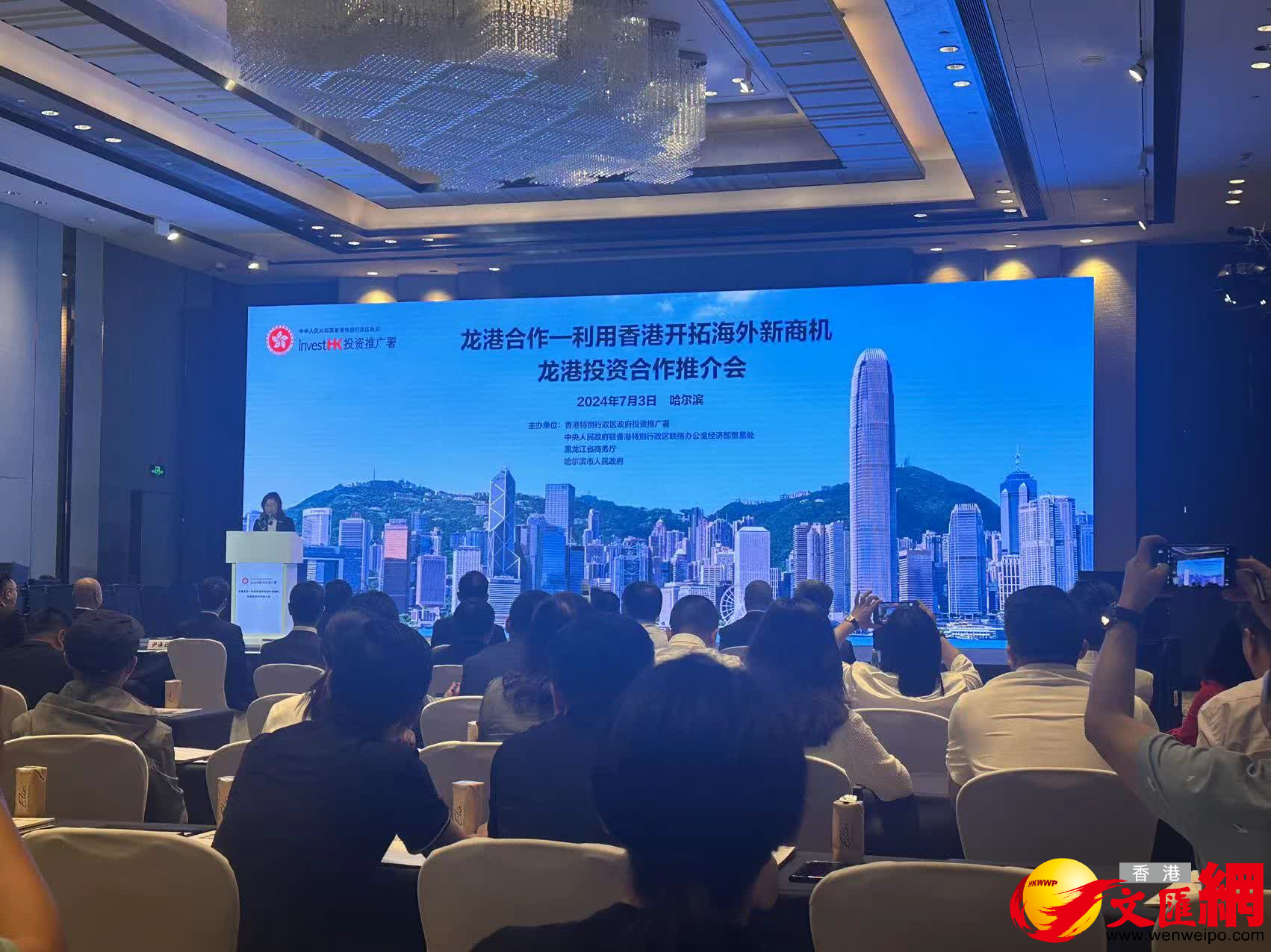 (香港文匯網記者 王欣欣 哈爾濱報道)「習近平主席在2023年主持召開新時代推動東北全面振興座談會時指出,推動東北全面振興面臨新的重大機遇,實現高水平科技自立自強,有利於東北把科教和產業優勢轉化為發展優勢。關於這個發展方向的重要指示,與國家『十四五』規劃要求香港鞏固提升『八大中心』,其中包括香港發展國際創新科技中心的戰略高度一致,龍港兩地恰可以朝着同一個目標相互補充,共贏進步。」7月3日,在哈爾濱舉辦的「龍港投資合作推介會」上,香港特別行政區政府投資推廣署助理署長蔣學禮博士表示,相隔10年,投資推廣署再赴黑龍江開展推介活動,希望推廣和服務龍江企業,繼續善用香港作為內地企業走出去和把外資引進來的首選平台。